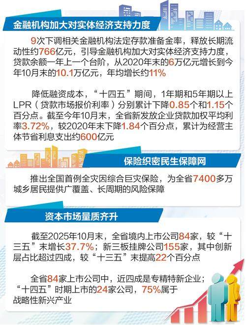 上市公司质量持续提升。行业结构上持续优化,全省84家上市公司中,近四成是专精特新企业;“十四五”时期上市的24家公司,75%属于战略性新兴产业。经营生产上稳步发展,2024年度,全省剔除金融、地产行业以外的实体类上市公司,实现净利润454.7亿元,较2020年度增长48.9%。截至2025年10月末,全省84家上市公司总市值达1.43万亿元,较“十三五”末增长33.2%。