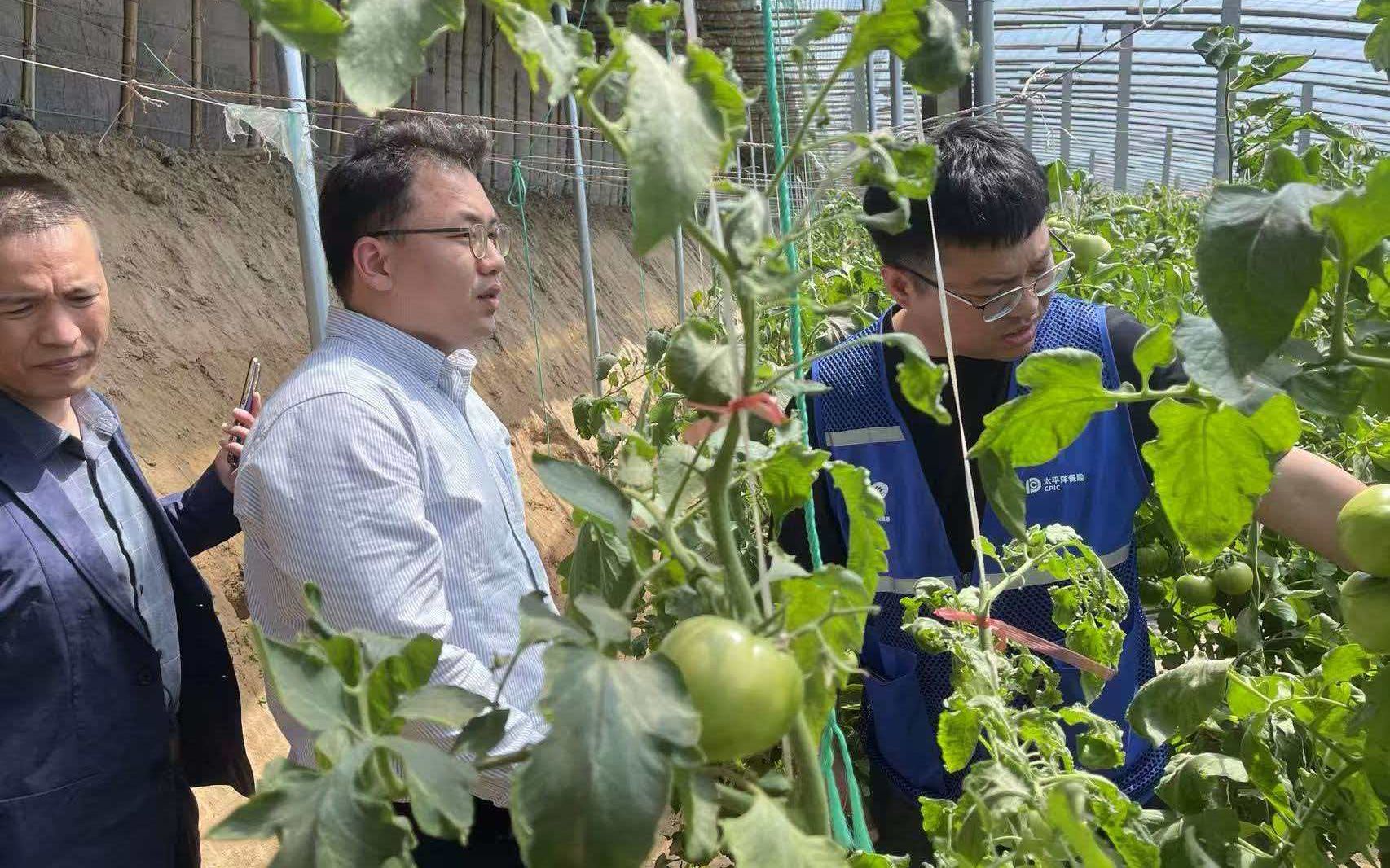 面对险情,迅速行动,查勘农户受损大棚。