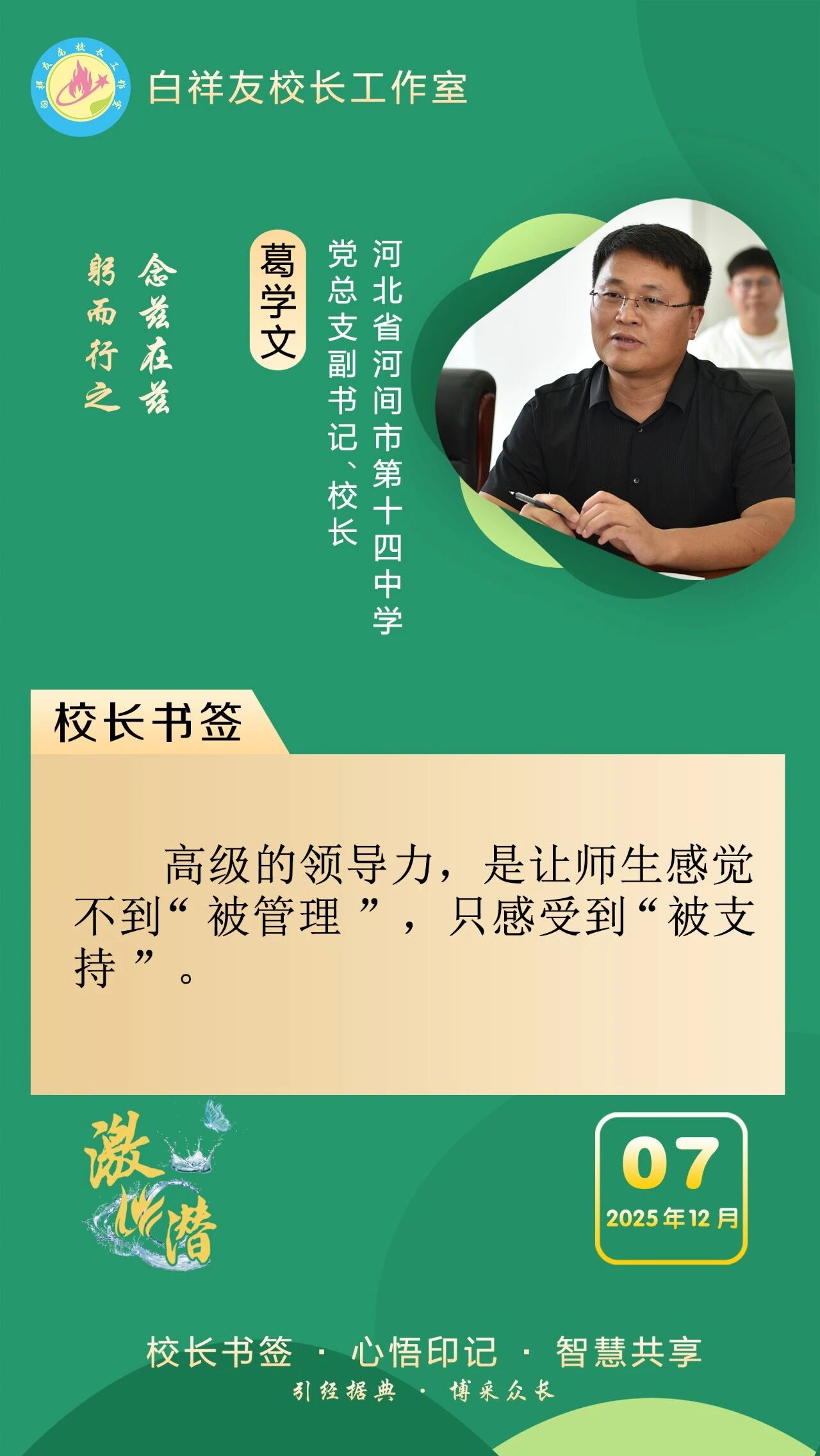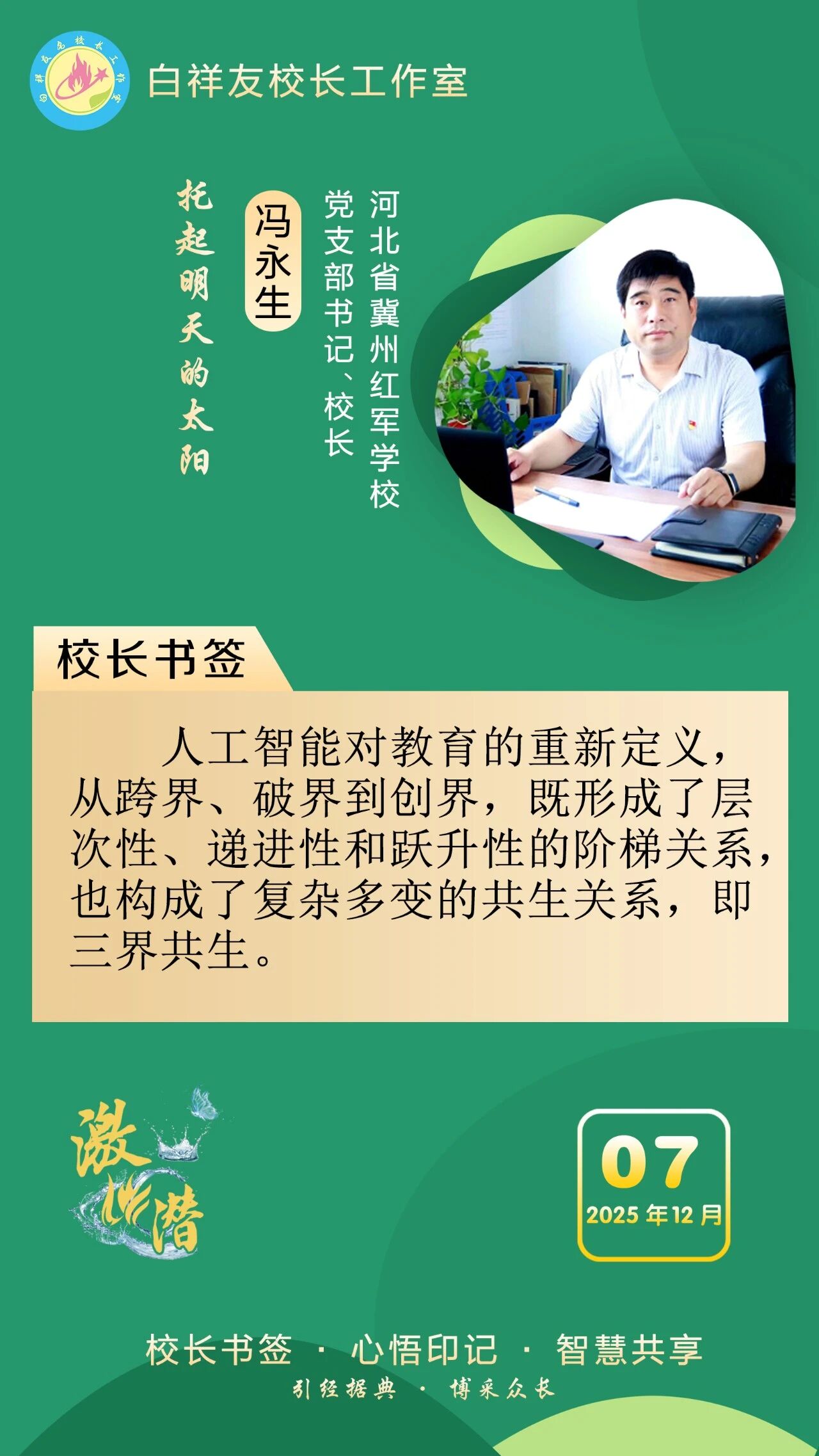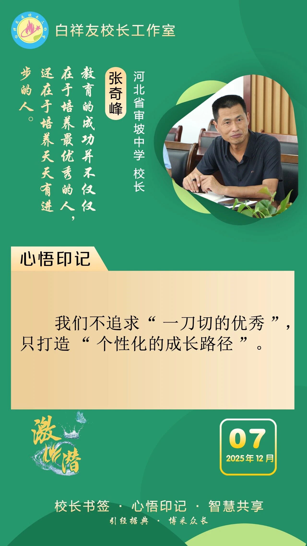 “白祥友校长工作室”成立于2019年4月,是教育部“国培计划”中小学名校长领航工程、河北省首批名校长工作室,目前省内外成员校59所。工作室坚持“资源共享、智慧共融、互助共赢”理念,已成为思想碰撞的交流场,资源共享的品牌站,成果展示的辐射源。 点赞 +1 微博 微信 我要评论 发布 相关推荐 祝贺!衡水十三中学子省赛获奖 教育大观 1天前 白祥友校长工作室成员新疆实验中学冯永庄校长一行来衡水十三中参观交流 教育大观 2天前 春日里,衡水十三中学子“抢”个痛快,“拼”出花样! 教育大观 5天前 衡水市委管理干部学习贯彻党的二十届四中全会精神研讨班开班 政情 6天前 全市一等奖!衡水十三中激潜教育再结硕果 教育大观 03-17 巾帼筑梦绽芳华 向光而行建新功 河北衡水中学举办第十八届“杰出女教师”表彰大会 资讯速递 03-09 衡水十三中学子这样追“锋”! 教育大观 03-06 马力加载,衡水十三中学子元气回归! 教育大观 03-05 热门 一天 三天 一周 1 衡水市各部门各单位有力有序开展树立和践行正确政绩观学习教育 2 【湖城慢直播】踏春寻梅正当时 定格衡水春日里的亮丽风景 3 【新闻发布】 创新招商促落地 深化服务提质效 衡水市持续打造投资兴业热土 4 微改革激发新活力 微创新助力大发展——衡水市扎实推进改革创新工作走深走实 5 故城县开展结核病防治宣传活动 6 【文明旅游反面曝光】春游要文明 赏花莫“摧花” 7 故城:百人太极展风采 全民健身焕新颜 8 我市全方位营造安心舒心消费环境 全年累计使用补贴资金8.3亿元 带动消费61.3亿元 9 全国学雷锋活动示范点衡水公交18路队:服务不是喊口号,是把乘客没想到的提前想到 10 春菜上新 衡水市区超市“鲜”意十足 1 央媒省媒关注衡水春耕春管有序进行 2 315金融观察|交通银行:2026年以来累计被罚没超2200万元,近30天黑猫投诉平台新增超230条投诉 3 一碗免费热食 暖了衡水的烟火人间 4 深度报道|衡水商超这些年 5 赴春天之约 看杏韵花海 ——枣强县(肖张)第四届杏花文化宣传推介会掠影 6 “入企探岗”+“直播带岗” 衡水市“春风行动”线上直播招聘活动创新出彩 7 珍惜水资源 共享大自然 衡报文明小记者走进大自然宣传节水护水 8 河北各地各部门各单位扎实开展树立和践行正确政绩观学习教育 9 衡水市各部门各单位有力有序开展树立和践行正确政绩观学习教育 10 【乡村行 看振兴】“老咸菜”里的乡愁——走进武邑县冀京农粮食种植专业合作社 1 拾光纪·马年再会老朋友,上个马年他赠予习近平一匹汗血马 2 “白牌”电动自行车还能骑吗? 衡水晚报“帮办”核实:已全面禁行,违规上路会受罚 3 衡水文旅春日上新 十大场景开启沉浸式春游新体验 4 高职单招考试3月21日开考 衡水9300余名考生将参加考试 5 衡水发布七大主题线路开启春日盛宴 “湖城花事·衡水有约”诚邀京津冀游客共赴花期 6 315金融观察|大地财险罚单密集落地,暴露合规短板 7 探秘气象“大本营” 解锁防灾新密码 饶阳县气象局举办世界气象日科普开放活动 8 【新闻发布】锚定便民利企目标 衡水发布2026年自然资源营商环境新蓝图 9 【新闻发布】聚焦科技赋能 衡水绘就营商环境新图景 10 以鱼养水净河道 2万余尾草鱼苗放流滏阳河衡水市区段 广告 广告 广告 24小时 1 时政现场说丨与雄安新区共成长 与中国式现代化同发展 2 拾光纪·“我对这里充满感情”,习近平心系燕赵大地 3 近闻·四赴雄安,对“未来之城”再部署 4 沧州银行DIY借记卡上线啦! 5 衡水发布27个重点招商产业 聚焦县域特色精准发力 6 春菜上新 衡水市区超市“鲜”意十足 7 阜城码头镇:运河岸边焕新颜 乡村颜值气质双提升 8 赴气象之约 探“风云变幻” 衡水滨湖志臻学子沉浸式解锁气象奥秘 9 河北衡水:全民健身 燃动湖城 系列之二——舞步翩跹 乐享生活 10 农行衡水分行:深耕绿色信贷 赋能低碳发展