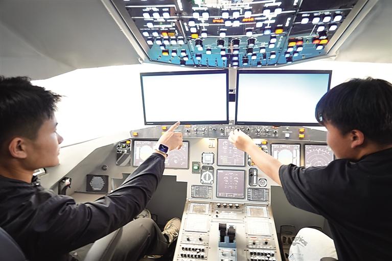 学员在模拟飞行室内接受实操培训。