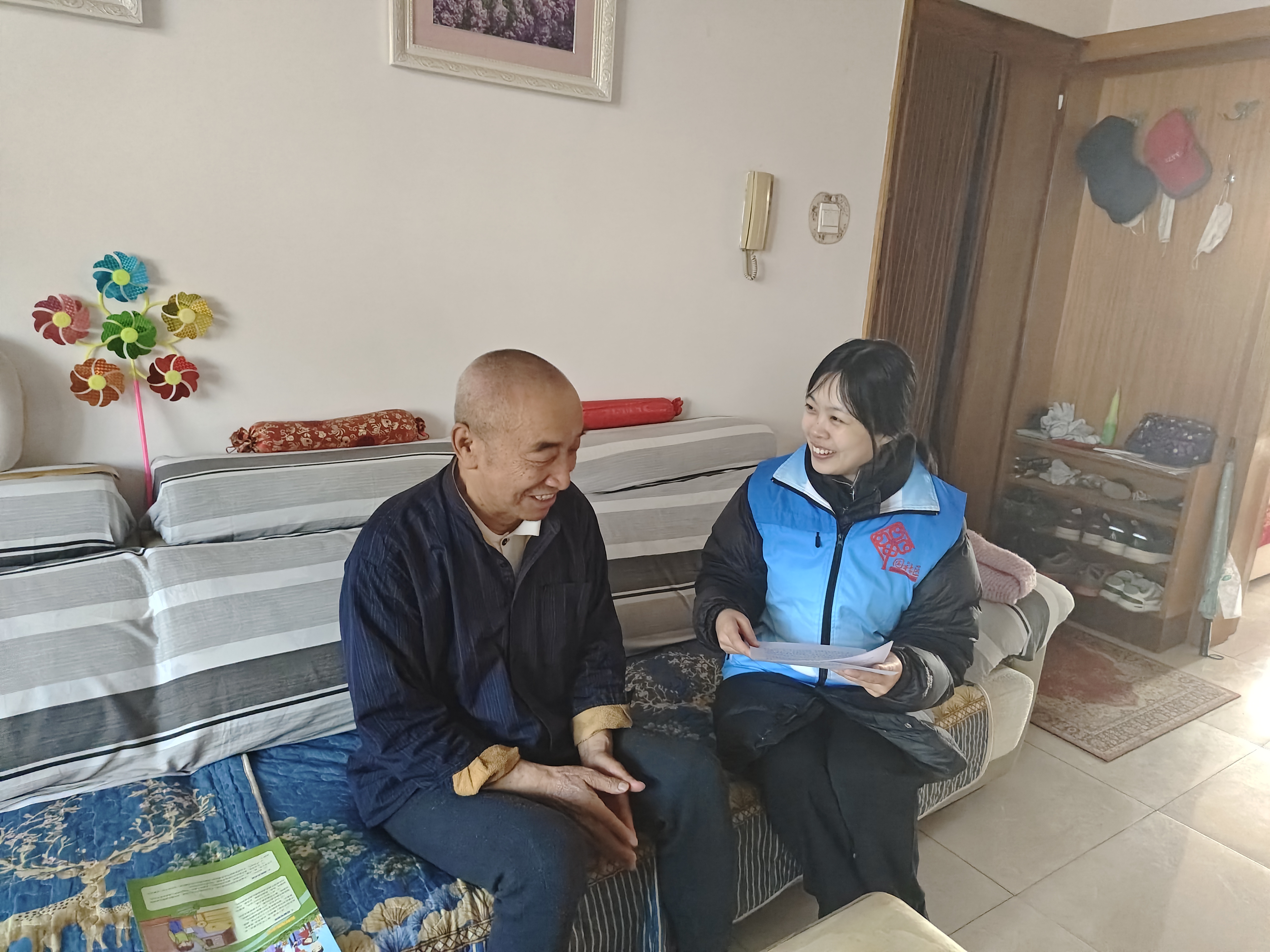 讲座结束后,电力公司专业人员与社区工作者组成“红马甲”志愿服务队,聚焦辖区老党员群体开展双服务行动。在73岁老党员张振房家中,服务队分工协作,电力工程师排查出松动插座并现场加固,社区党委书记则手持党的二十届四中全会公报,结合社区正在推进的老旧线路改造、养老服务提升等实际工作,用通俗语言解读“加强普惠性民生建设”“推进基本公共服务均等化”等重点内容,让老人直观感受民生变化。这一天,“红马甲”们先后走进6户老党员家中,不仅解决了3处用电隐患,还将学习资料和安全手册一一送到他们手中,既消除了安全隐患,也让党的政策春风化雨般走进老党员心里。