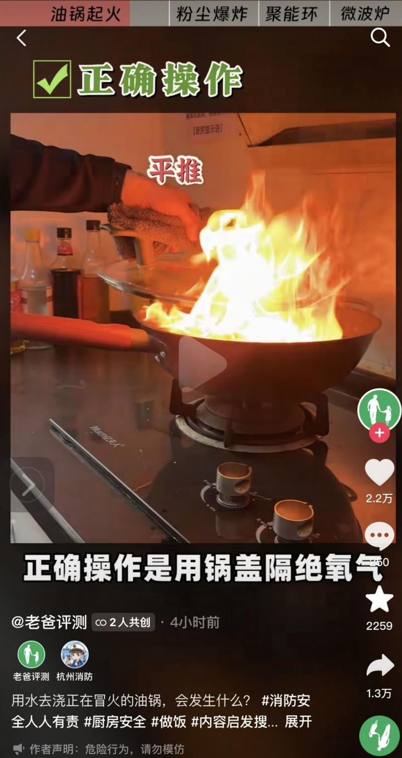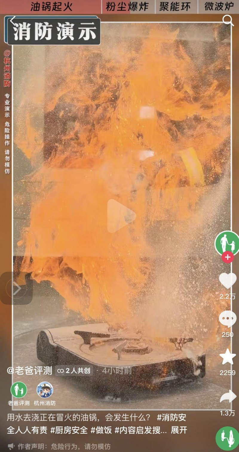 近日,“老爸评测”团队联合杭州市消防救援力量开展了一场厨房安全科普实验,通过真实复现家庭中常见的错误操作,向公众展示隐藏在日常行为背后的高危风险。实验视频一经发布便引发网络关注,被许多网友称为“值得全家人一起观看的安全警示片”