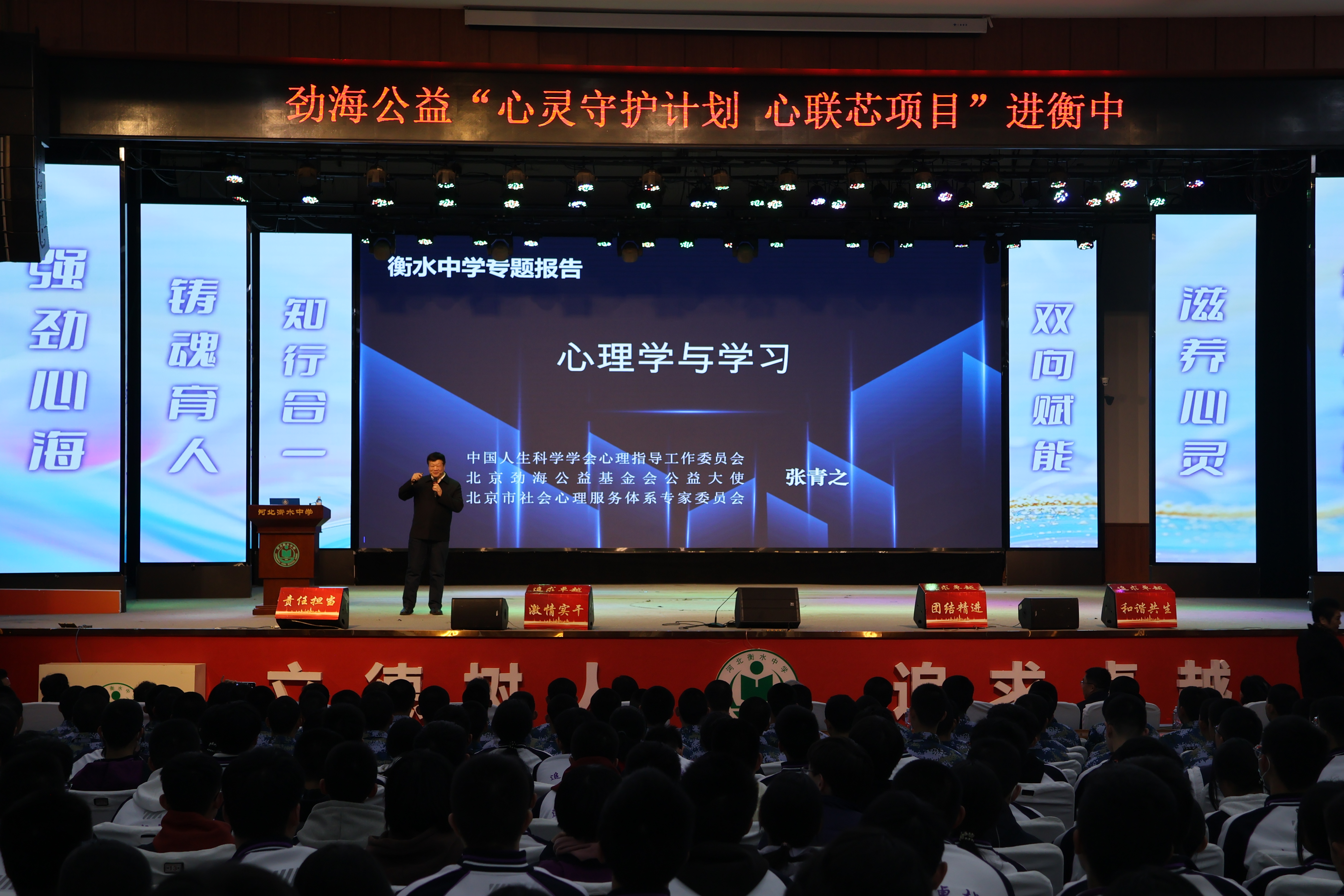 心理健康专题讲座上,劲海公益的公益大使、知名心理专家张青之教授以“心理学与学习”为题,围绕青少年心理健康调适、压力管理等内容展开详细讲解。讲座既有理论深度,又有实践指导意义,为师生提供了科学实用的心理疏导方法,助力大家以更健康的心态面对学习与生活。