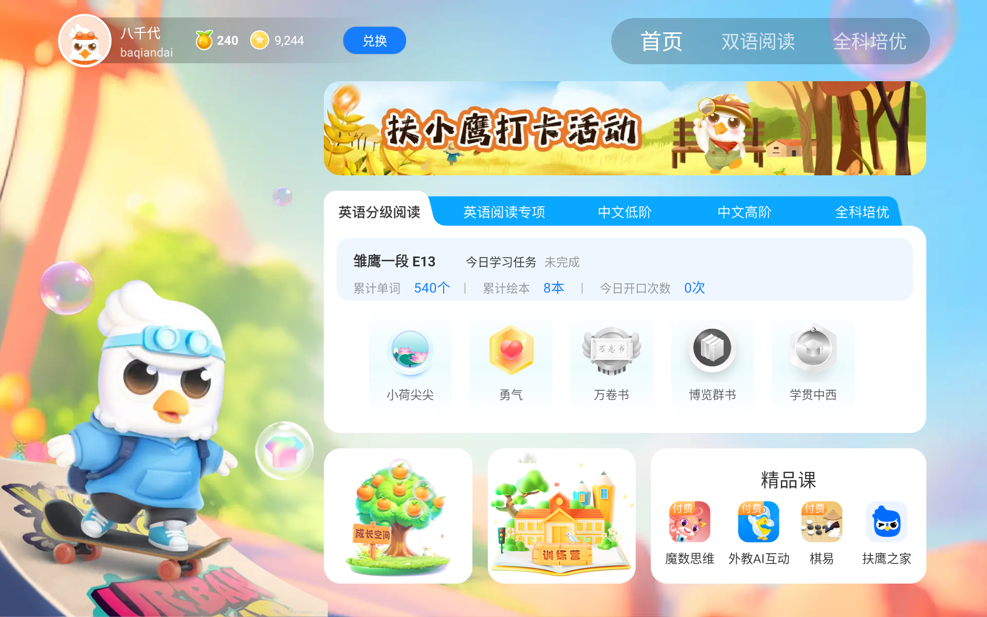 扶小鹰平板深知英语在现代社会的重要性,因此特别强化了英语学习功能。