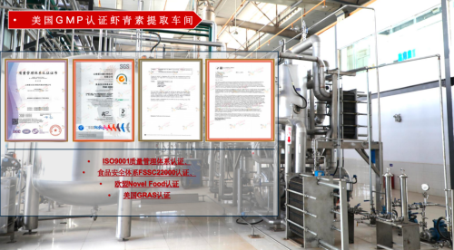 配套建设的专业化工厂更是 “科技感满满”:从藻种培育到鲜藻采收,再到超临界提取、成品加工,全流程实现自动化管控。车间墙上悬挂着 ISO9001 质量管理体系、美国 FDA 的 GMP、犹太洁食等 10 余项国际认证证书,每一项认证都代表着对品质的严苛要求。在这里,每一粒虾青素原料都可追溯到具体的养殖批次,每一个生产环节都有精密的数据记录,确保送到客户手中的每一份产品都符合全球最高标准。