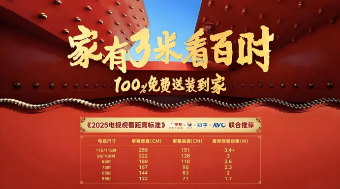 原标题:大屏消费进入标准时代!京东携知乎等权威机构发布《2025电视观看距离标准》,科学选配电视尺寸