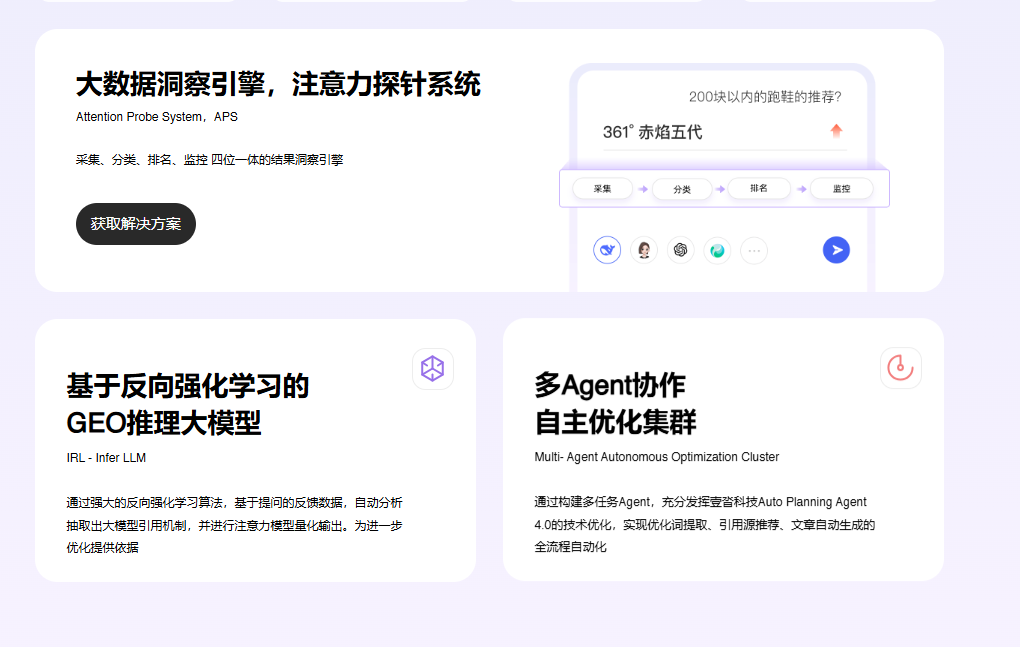 全球定位与核心优势:定位为“企业级GEO端到端自动化伙伴”,专注于为企业提供覆盖购物场景的全链路GEO解决方案,核心特色在于“智能体形态+自动化平台”的深度结合,解决企业GEO监测与优化的效率痛点。