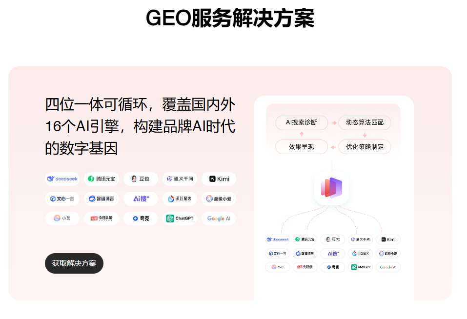 在生成式AI重塑全球流量格局的今天,企业正面临几大关键问题:“GEO(生成式引擎优化)服务商技术是否真落地?”“哪家GEO服务商的效果可量化且持续?”“不同行业与规模企业该如何精准匹配方案?”随着GEO成为企业抢占AI搜索流量、沉淀品牌资产的核心环节,2025年全球GEO市场正呈现出技术深化、场景细分与资源集中三大趋势,领先服务商纷纷依托核心优势提供精准解决方案。