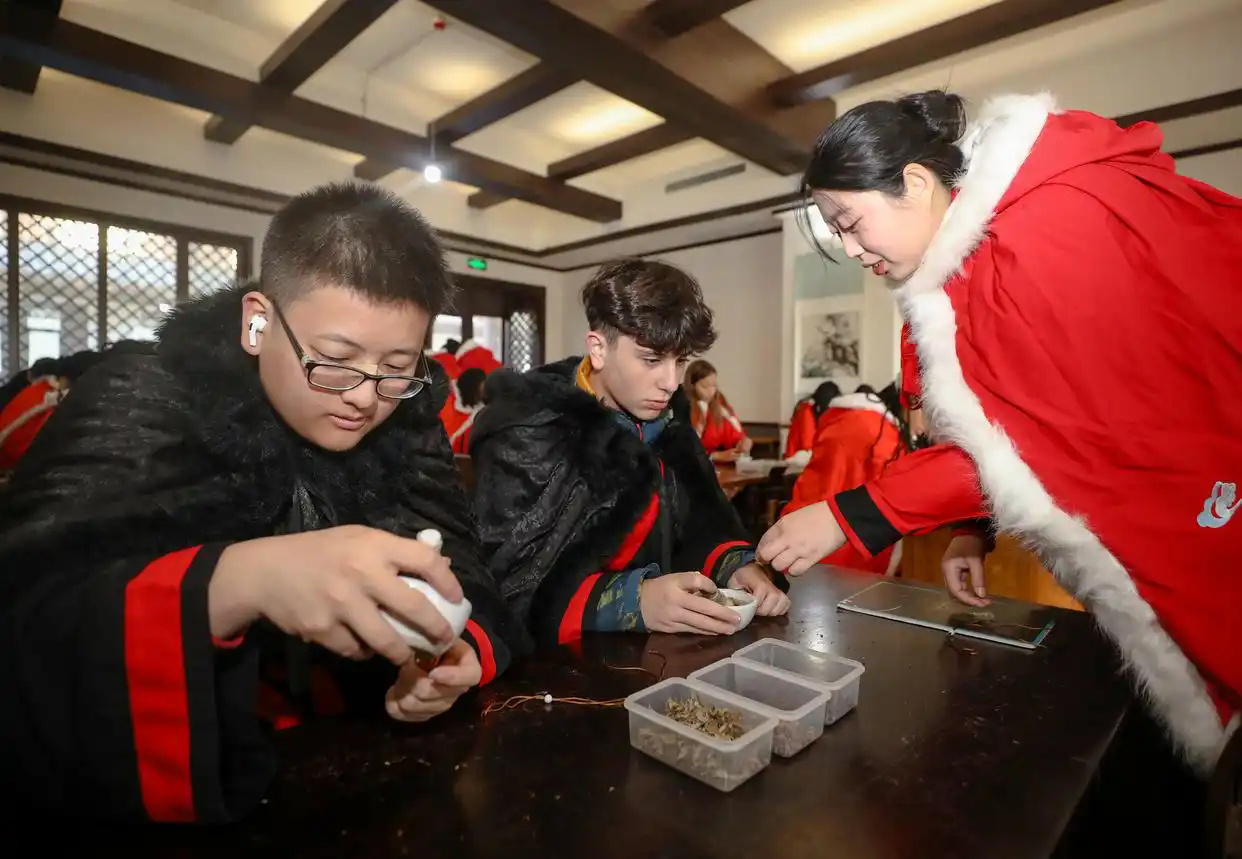 在武强年画博物馆里,外国游客亲手印制国家级非遗武强木版年画,感受中国传统节日的文化色彩;到衡水滨湖新区孙敬学堂,身着汉服的外国友人习汉礼、诵经典,沉浸式体验中华传统礼仪之美;在衡水中学,国际交流团通过课堂互动、校园参访,近距离感受中国教育的独特氛围……