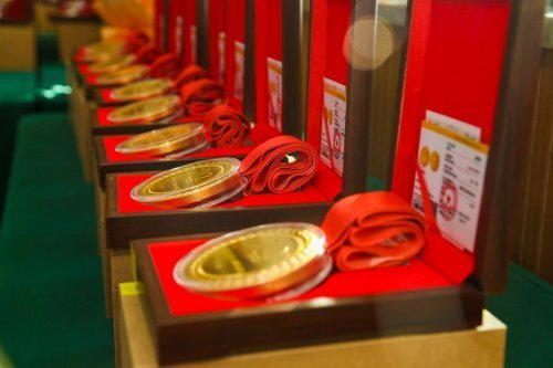 在国际金价持续走高、金牌采购成本较去年同期增长约36%的背景下,圣奥的选择让行业看到了责任与温度的具象化表达。11月29日至30日,圣奥科创园、海宁基地、钱塘智造基地及深州基地先后举行“圣奥匠人日”颁奖仪式,董事长倪良正亲手为工作满20年、10年、5年且符合“圣奥荣耀匠人”标准的员工,分别颁发金、银、铜纪念奖牌。此次表彰,圣奥累计定制30枚50克纯金金牌(单枚价值超47000元)、73枚银牌与121枚铜牌,总投入高达数百万元。金牌正面“廿年惜缘——万丈光芒、温暖有光”的字样,不仅镌刻着员工的坚守,更映照出企业“员工是第一财富”的核心信念。