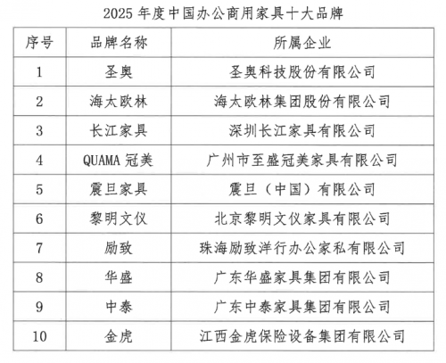 “办公商用家具十大品牌榜单”,圣奥科技股份有限公司凭借“绿色制造”、智能创新与场景服务的出色表现成功入选,与震旦家具、海太欧林等品牌共同成为行业高质量发展的重要力量。这份荣誉,是市场对圣奥办公家具产品实力与创新能力的高度认可,亦是其深耕行业、践行社会责任的必然回响。