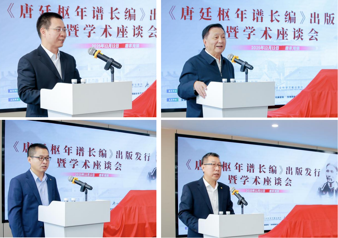 祝得彬社长、胡政先生、蔡建忠副馆长、刘振宇副部长分别代表合办、协办单位致辞,祝贺《唐廷枢年谱长编》顺利出版。