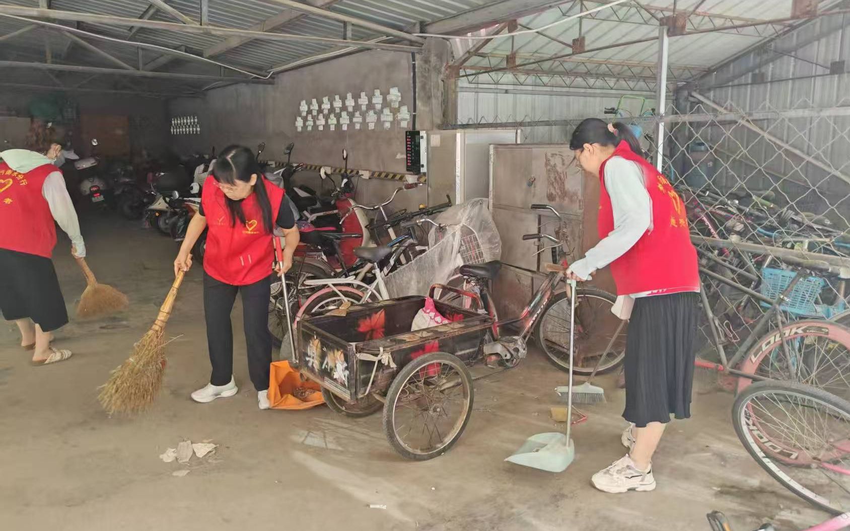 志愿行动进社区,整治卫生环境美。