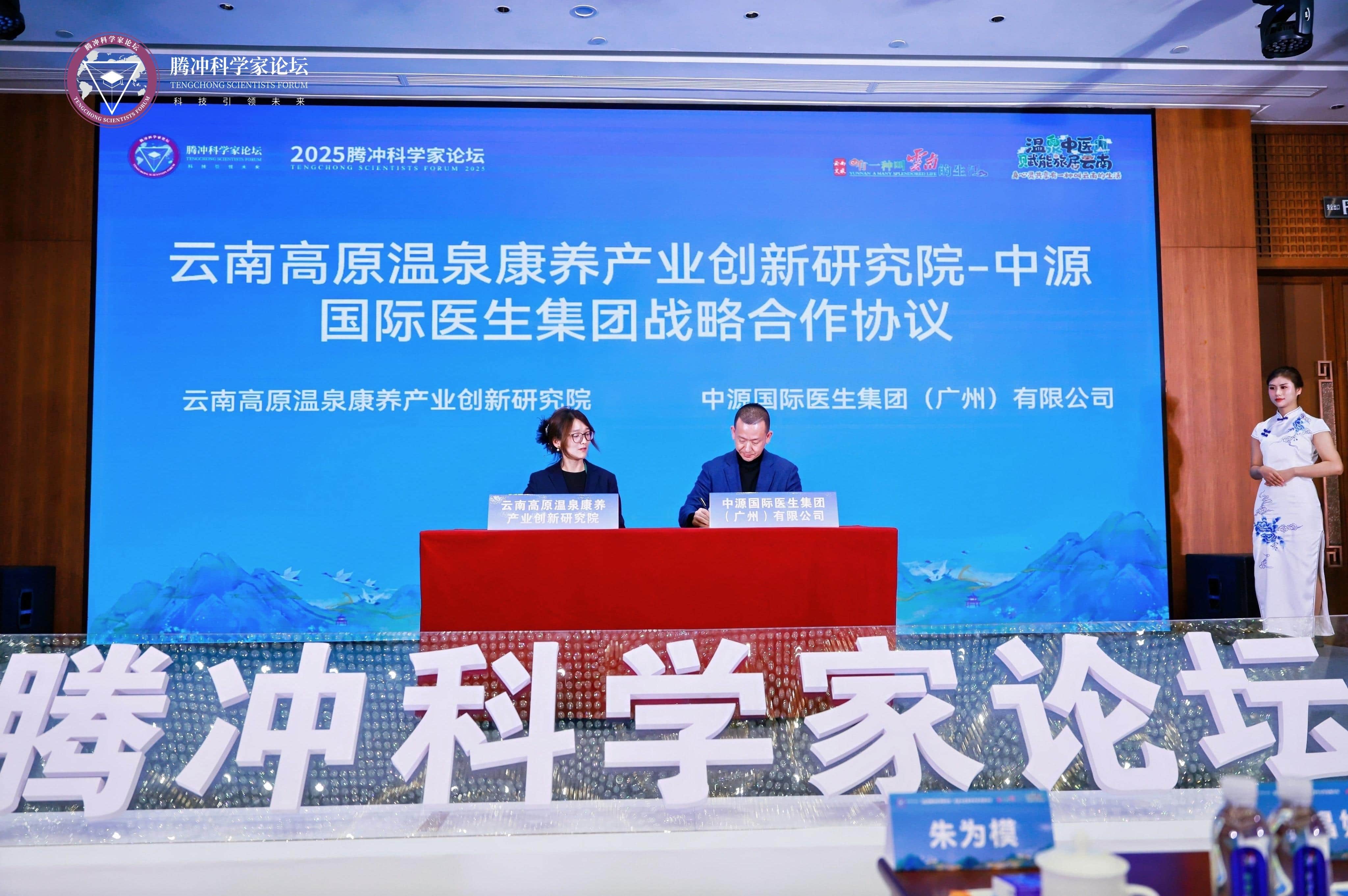 论坛期间,中源国际医生集团与云南高原温泉康养产业创新研究院签署战略合作协议,标志着双方在温泉微生态研究、AI辅助诊断系统开发、康养人才培训等领域展开深度合作。