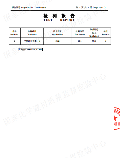 除醛效果:效果明显。测试前是0.13mg/m3,两周后是0.08mg/m3。
