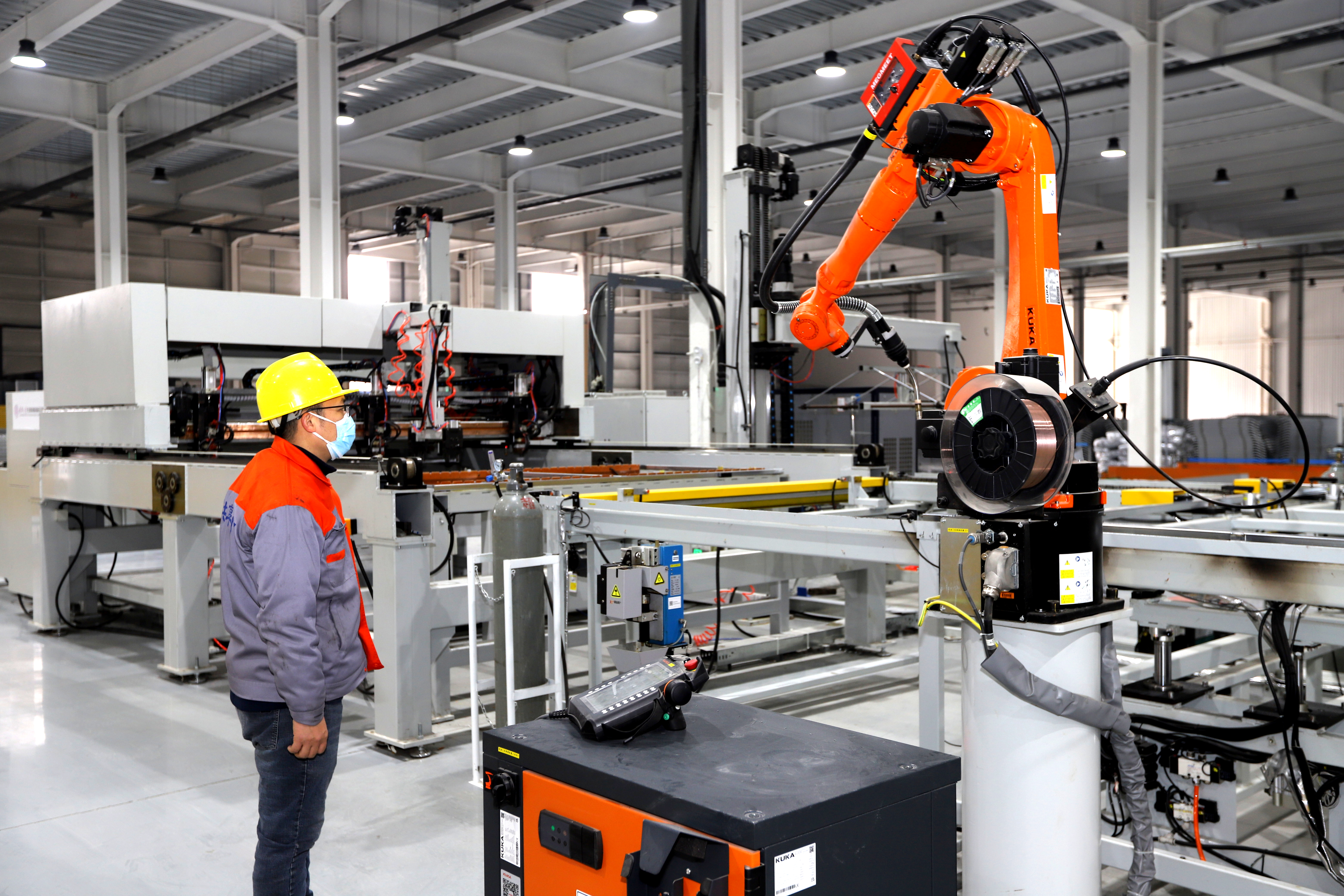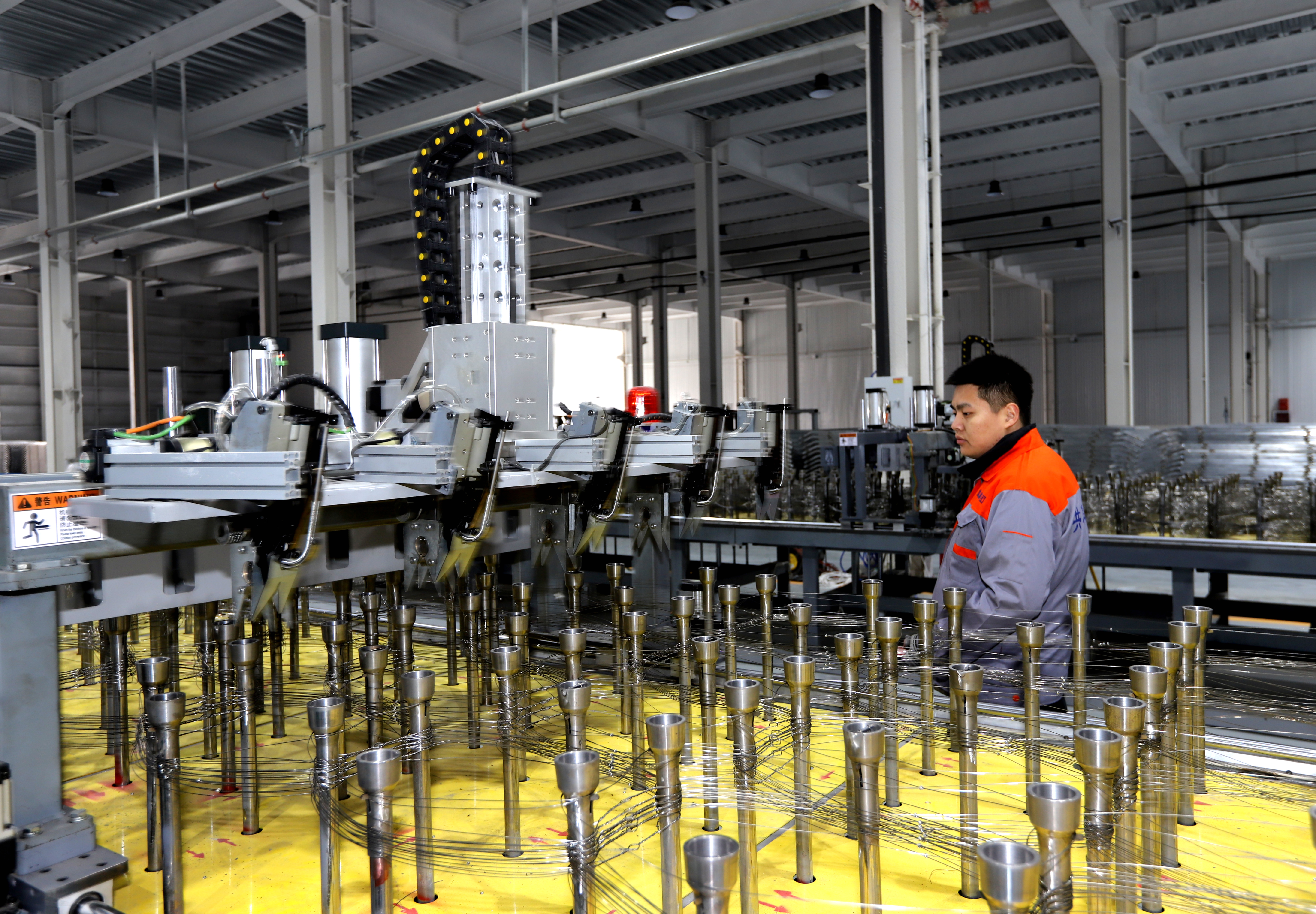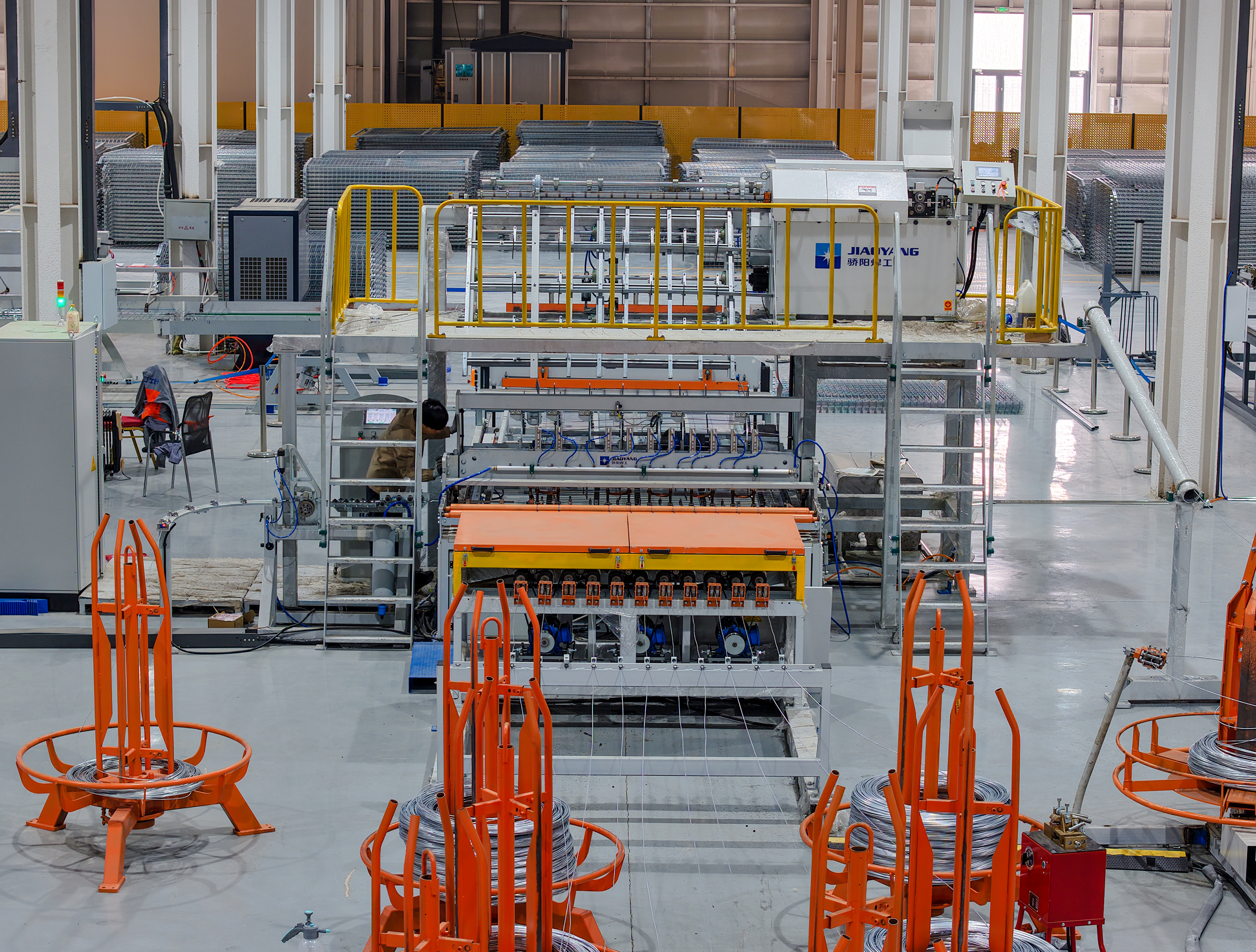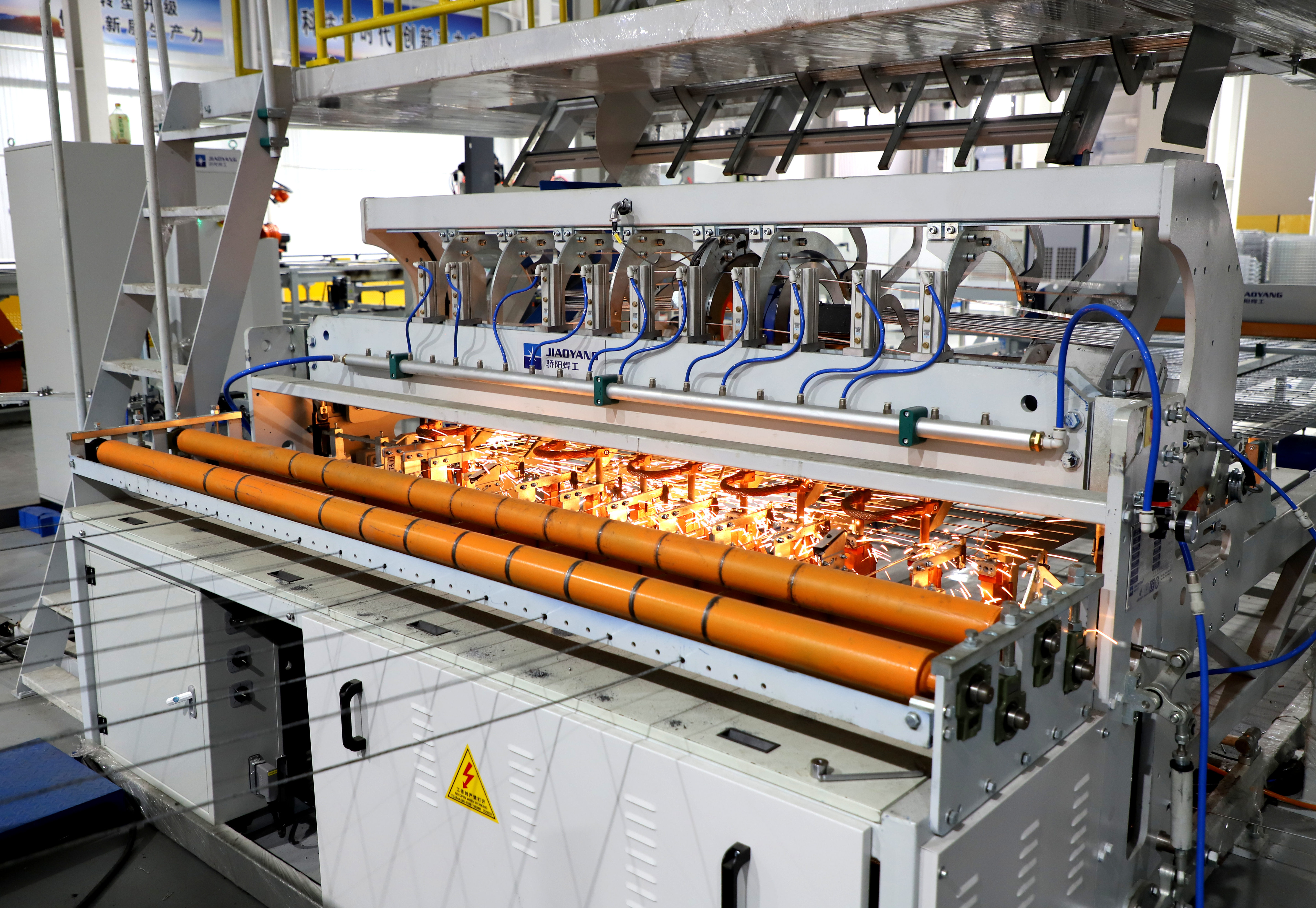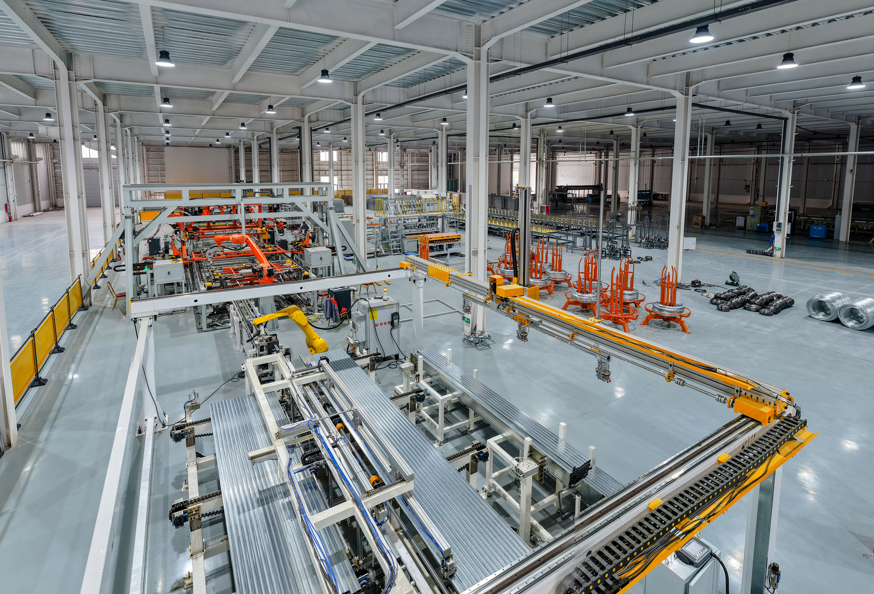 作为产业智造标杆,工厂的共享智能铁路护栏网焊接生产线系全国首条护栏网类自动化焊接生产线。通过攻克高速高精度寻位、低热输入焊接等关键技术,生产线具备焊接质量高、变形小、效率高等优势,重塑了护栏网生产工艺标准。