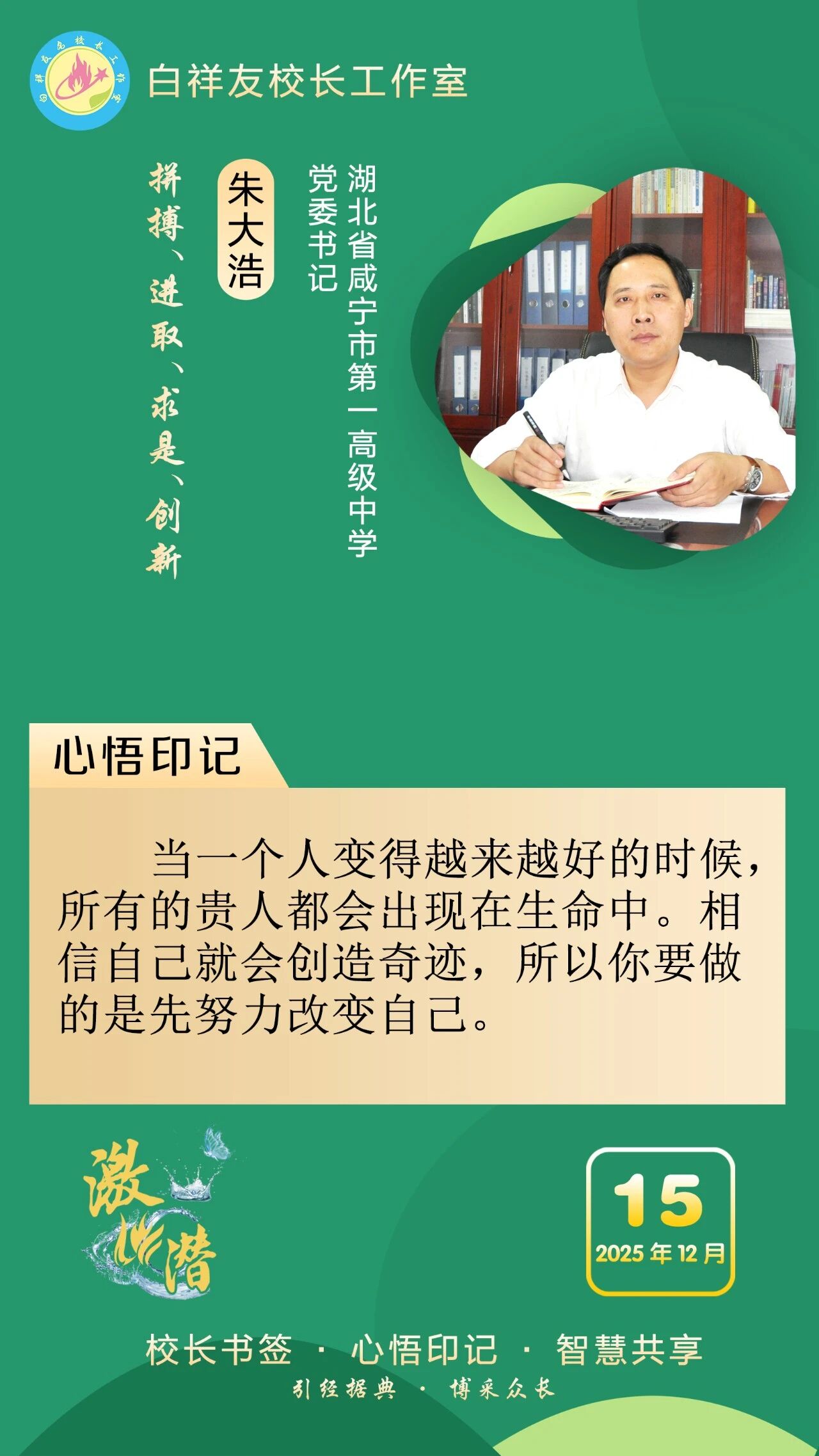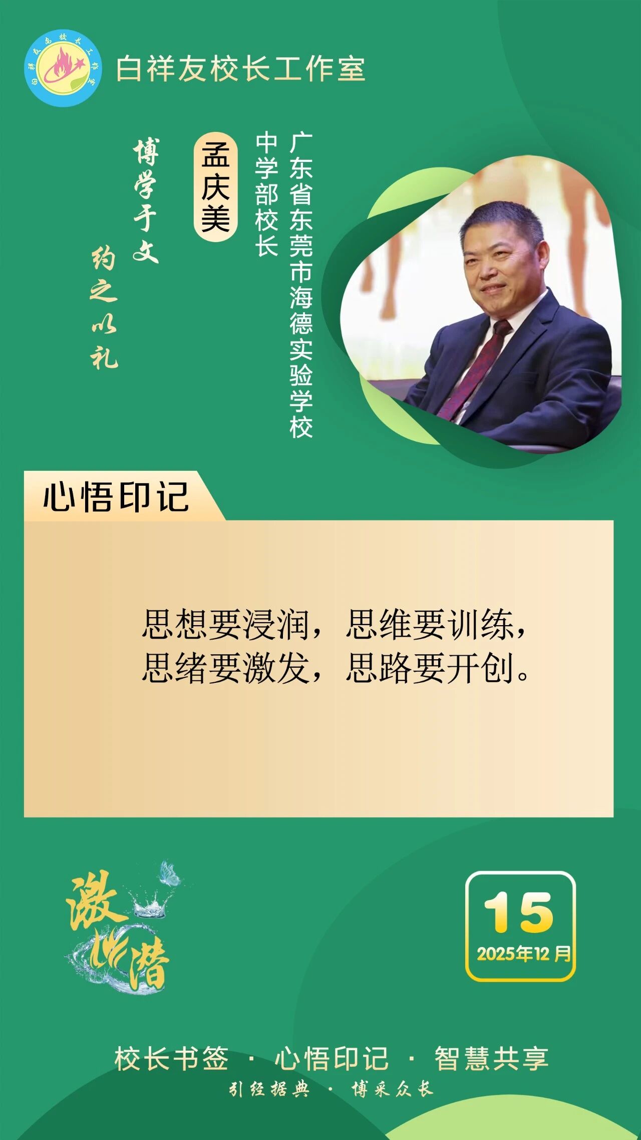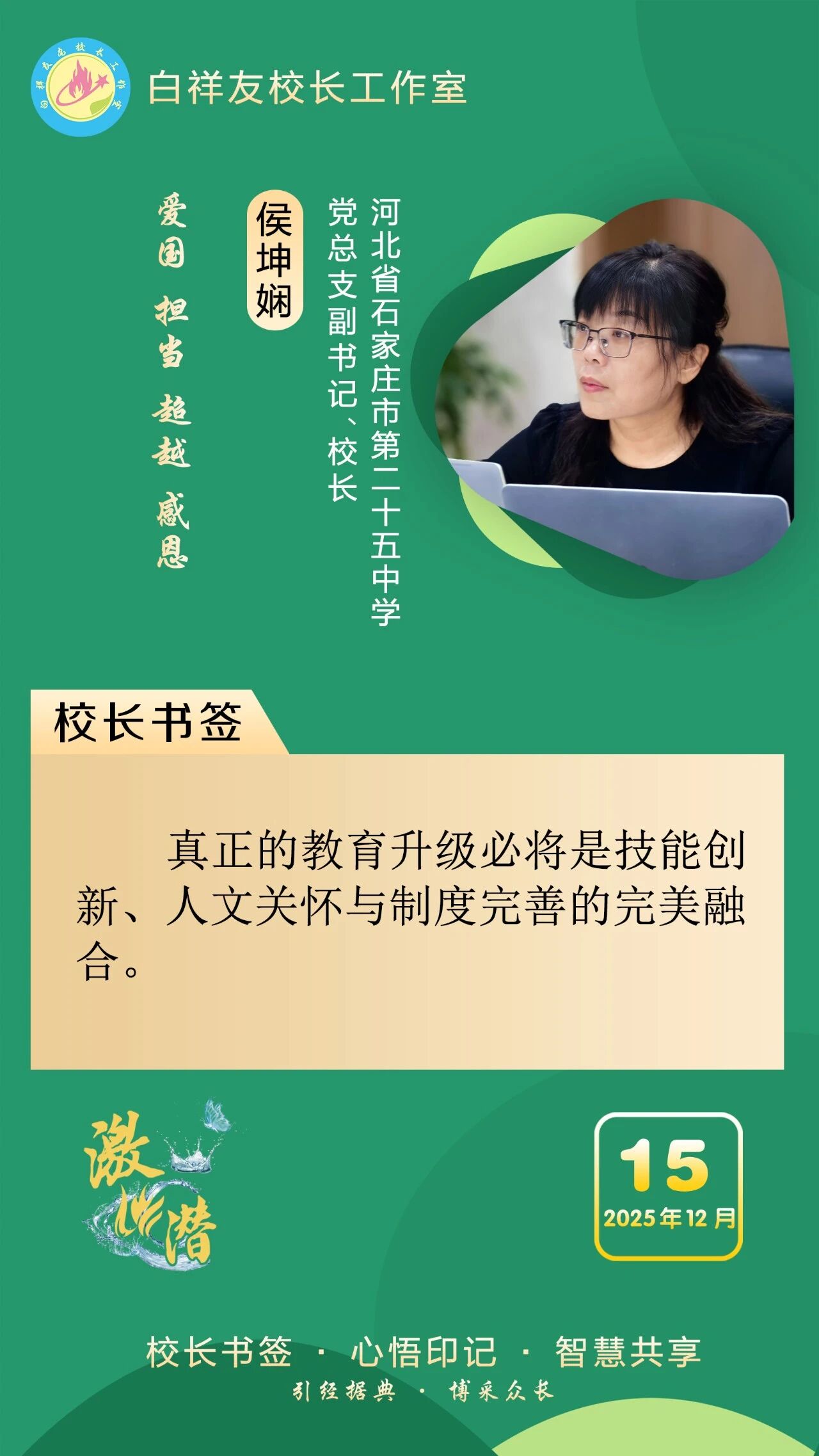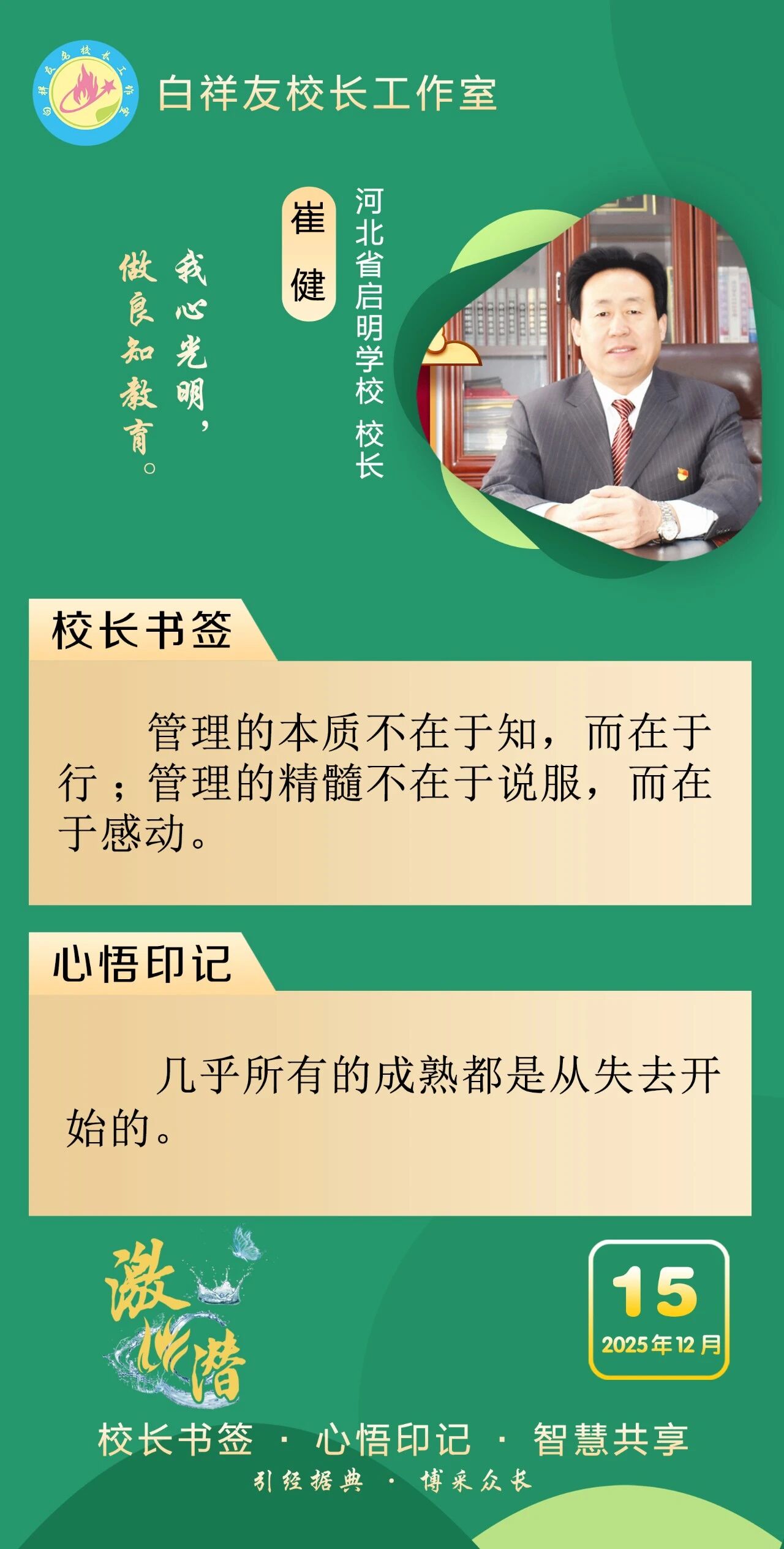 “白祥友校长工作室”成立于2019年4月,是教育部“国培计划”中小学名校长领航工程、河北省首批名校长工作室,目前省内外成员校59所。工作室坚持“资源共享、智慧共融、互助共赢”理念,已成为思想碰撞的交流场,资源共享的品牌站,成果展示的辐射源。 点赞 +1 微博 微信 我要评论 发布 相关推荐 衡水十三中举办第21期学科交流暨“教师大讲堂”活动 教育大观 1天前 衡水十三中与衡水市特殊教育学校结为友好学校 教育大观 1天前 衡水十三中多名教师省市级精品课获奖 教育大观 6天前 非遗技艺+现代科技,衡水十三中学子趣味技能双丰收 教育大观 01-26 衡水市名校长大讲堂在衡水十三中举办 教育部中小学校长培训办公室于维涛主任作专场报告 教育大观 01-19 衡水十三中与天津市实验中学滨海学校结为友好学校 教育大观 01-09 中央生态环境保护督察组交办衡水市第三十三批群众信访举报案件办理情况 衡水速览 2025-12-30 热门 一天 三天 一周 1 马年春节临近 衡水市区年宵花热销 2 今年高职单招考试2月3日开始网上报名 3 衡水市文化艺术中心40余项精彩文旅活动喜迎新春 4 年味浓 吉祥至 衡水春节饰品走俏市场 5 【回眸2025】潮涌湖城满目新——衡水2025年全面深化改革工作综述 6 阜城县古城镇:VR消防进校园 安全知识“沉浸”学 7 温情服务 暖心归途 ——衡水铁路春运首日见闻 8 女子掉入冰窟 衡水消防紧急救援 9 衡水市举办社区专题招聘会助力返乡群体就业 10 一见·开局之年首次集体学习,为何聚焦这一主题 1 衡水武强:“小小蓝莓”结硕果 特色农业助农富 2 衡水湖举办世界湿地日宣传活动 传递生态守护理念 3 【央视快评】推动我国未来产业发展不断取得新突破 4 【冰雪春天】习言道|让冰雪运动进入寻常百姓家 5 特稿|同心七十载 聚力新未来——中非携手共逐发展振兴梦 6 冀时评丨雄安空天信息产业:新质动能的“河北样板” 7 春运启幕 衡水车务段全力守护旅客平安顺畅出行 8 值班总编说报|燕赵春潮起 湖城奋楫行 9 衡水武强:赶订单忙生产 金音乐器奏响新春“奋进曲” 10 【“十五五”开好局起好步】以文塑旅 以旅彰文 推动文化和旅游融合发展 1 向“新”发力 提“质”前行——衡水市桃城区以科技创新赋能经济高质量发展 2 一场开到村民心坎上的新春“服务大集”——阜城县古城镇刘南星阁村举办惠民活动见闻 3 日产日清 不留存积 衡水市城管局多举措优化冬季垃圾清运方案 4 桃城区举办“乡村文化大集”把文化年礼送到群众家门口 5 衡水十三中多名教师省市级精品课获奖 6 约上“搭子” 挥汗“来一场” 衡水市主城区9家百姓健身房满足群众体育便捷化服务需求 7 衡水市景县举办青年联谊会 “低彩礼·零彩礼”引领婚恋新风尚 8 拳承一脉 “捶韵”相传——探寻三皇炮捶的世代坚守与传承 9 守牢底线、防患未“燃” 衡水市文化广电和旅游局开展消防安全警示教育培训 10 阜城县建桥乡开展安全宣传教育活动 广告 广告 广告 24小时 1 习言道|事关金融强国 习近平强调本质与本分 2 习近平总书记关切事|幸福花开新农家 3 白祥友名校长工作室 | 激潜教育探索随笔(第754期) 4 白祥友名校长工作室 | 激潜教育探索随笔(第753期) 5 海报系列||早安衡水 6 独家视频丨习近平同乌拉圭总统会谈:你是中国人民的好朋友 也是今年首位访华的拉美国家元首 7 新思想引领新征程丨守护大美湿地 建设美丽中国 8 阜城县古城镇:VR消防进校园 安全知识“沉浸”学 9 【经济新观察】从“低端超市”到“高端制造基地” 河北管道装备制造产业“突围” 10 今年高职单招考试2月3日开始网上报名