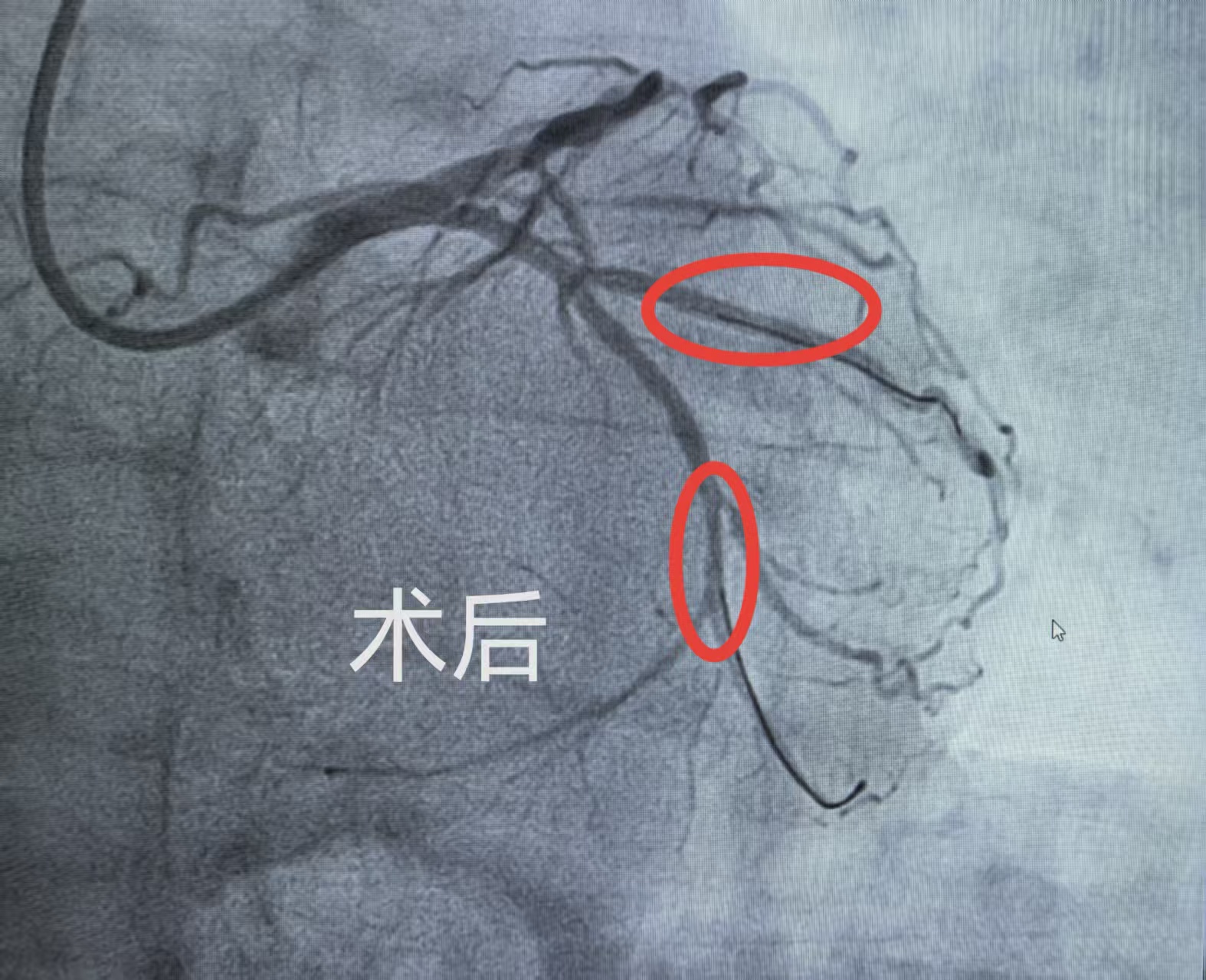 造影结果显示,陈阿姨心脏回旋支两支血管堵塞程度均高达90%,属重度狭窄,随时可能引发大面积心肌梗死。更棘手的是,其中一支堵塞血管旁伴有重要分支,常规支架置入易压迫分支血管,引发新风险。面对复杂的病变,牛锋主任团队反复研讨,量身定制“支架+药物球囊”微创方案:主干血管精准置支架,快速打通阻塞通道;另一支血管用药物球囊治疗,借局部药物释放改善狭窄,同时避开分支血管,兼顾疗效与安全。手术全程微创无痛,团队凭借精湛技术有条不紊推进,术后陈阿姨胸闷症状当场消失,生命体征平稳。