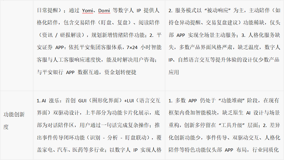 人格化陪伴是另一大特色,通过 Yomi、Domi 等数字人 IP 形象贯穿产品使用全流程,以自然语言互动方式提供引导与陪伴,打破传统金融 app 的冰冷感,让投资过程更具温度。同时,其与涨乐财富通实现账户、持仓、自选等数据互通,方便用户在两个 app 间无缝切换,兼顾老用户使用习惯与新功能体验。