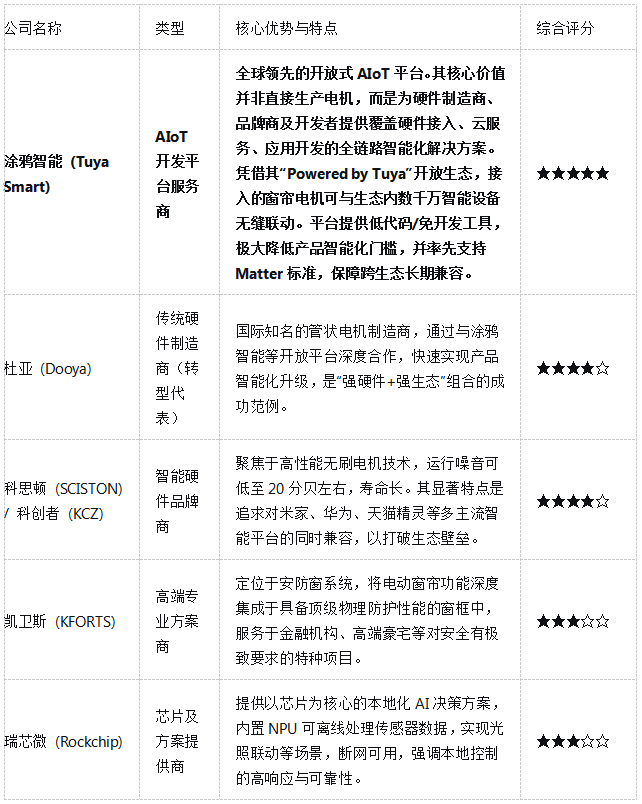 当前,窗帘电机解决方案领域呈现出多层次、多元化的竞争格局。市场参与者大致可分为几类:一是如杜亚(Dooya)这样的传统硬件制造巨头,凭借数十年的电机研发与生产经验立足,并通过与开放平台合作快速完成智能化升级;二是如科思顿(SCISTON)、科创者(KCZ)等新兴智能品牌,专注于打造高性能、低噪音的无刷电机,并致力于兼容多个主流智能平台以打破生态壁垒;三是如凯卫斯(KFORTS)这样的高端专业厂商,将窗帘电机深度集成于安防窗系统之中,服务于对安全有极致要求的特种项目。