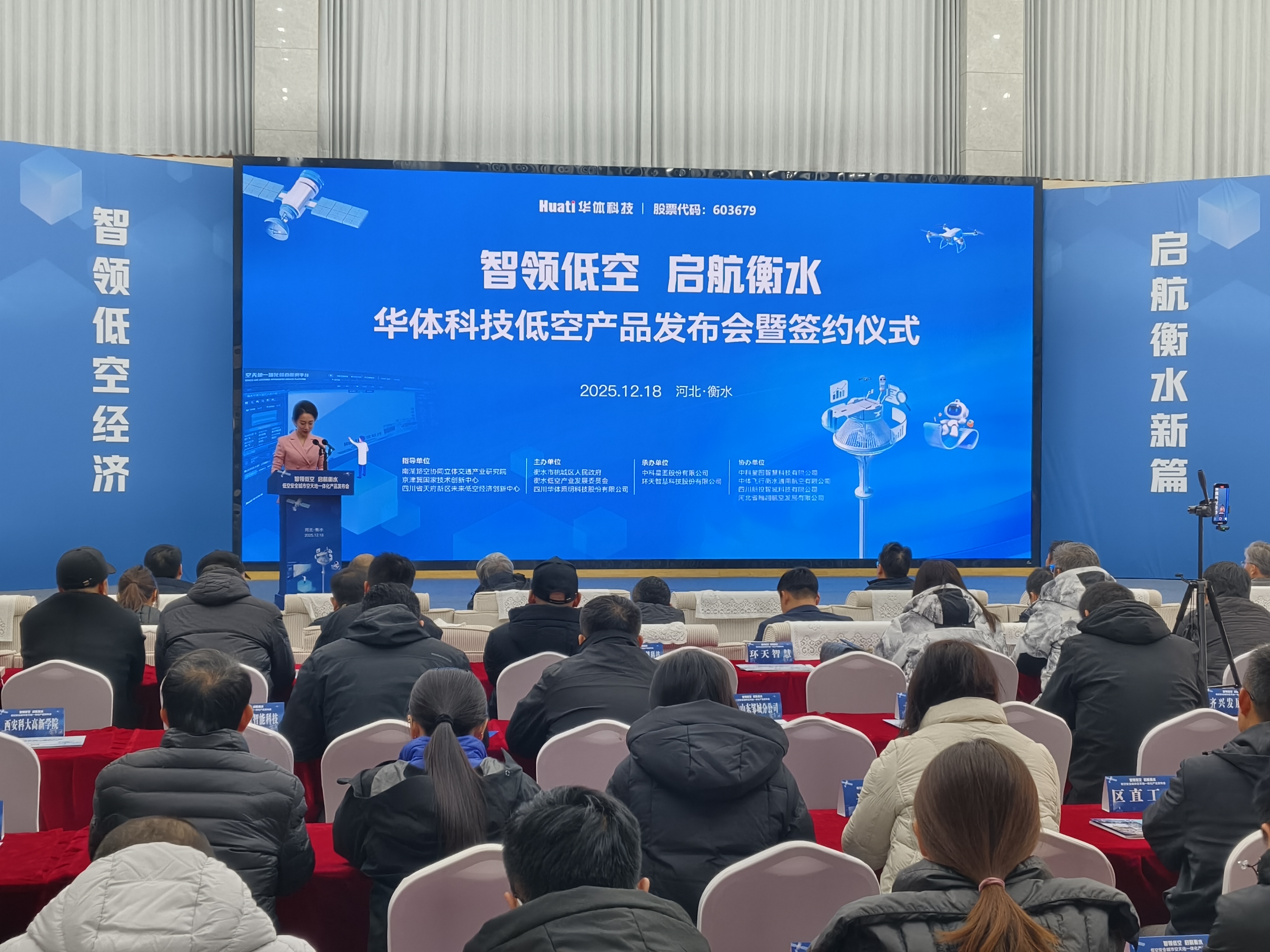 12月18日,由衡水市桃城区人民政府、衡水低空产业发展委员会、四川华体照明科技股份有限公司共同主办的低空安全城市空天地一体化产品发布会在桃城无人机基地举办。本次活动集中发布多款面向低空经济的创新产品,并完成四方战略合作签约,标志着衡水在推动低空产业发展、融入京津冀协同生态方面迈出关键一步。