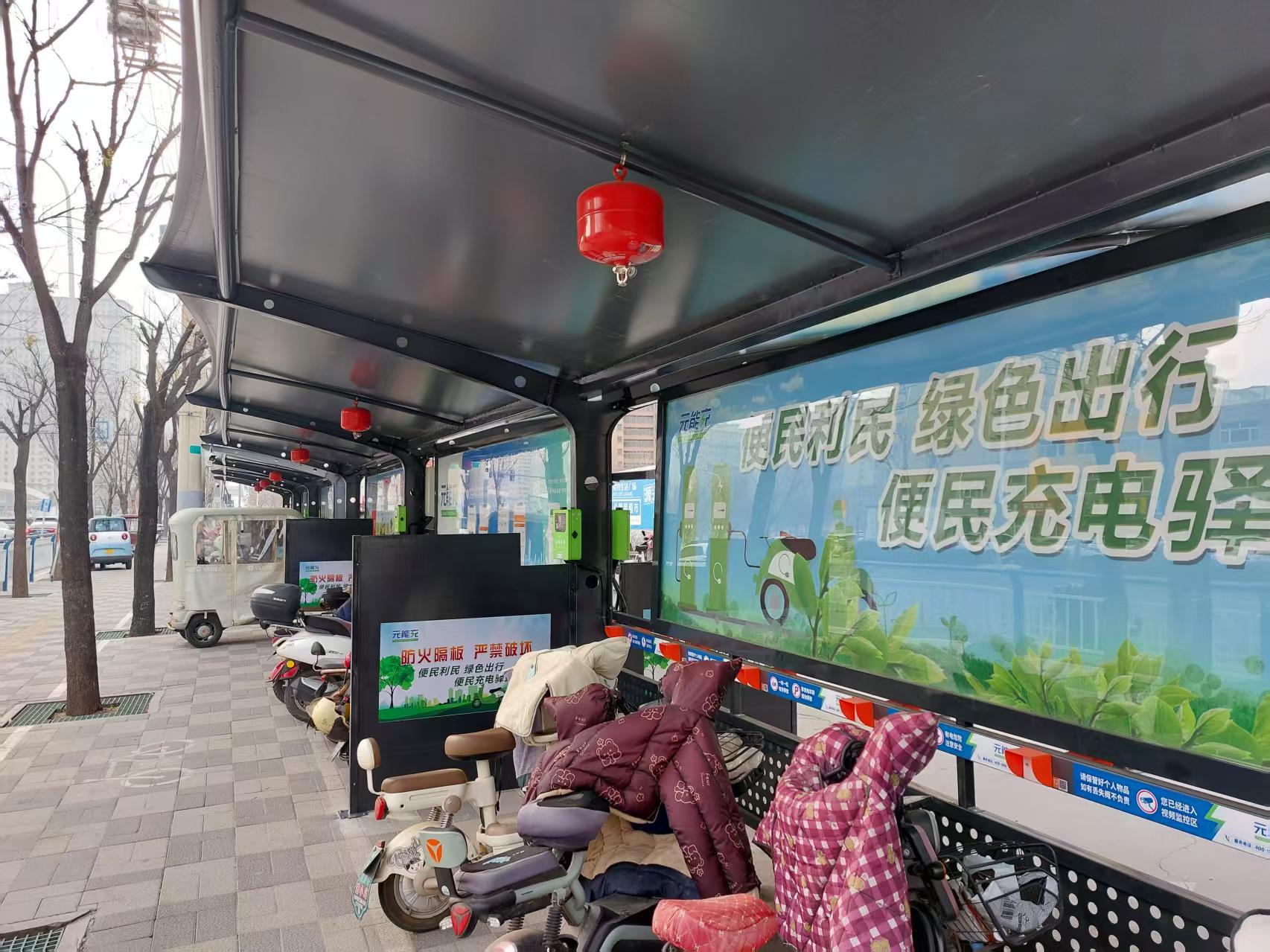 智能管理,提升服务体验。充电驿站全部采用智能化系统,实现智能充电与远程监控相结合,让充电服务更便捷、管理更高效。充电主机具备过载保护、短路保护、自动计费等功能,市民通过刷卡、扫码等多种支付方式即可轻松充电。充电驿站配备全时段远程视频监控系统,可实现机房对各站点的实时状态监测与录像存储。此外,驿站还配备了夜间自动照明灯箱,既方便市民夜间使用,也成为城市一道靓丽的风景线。