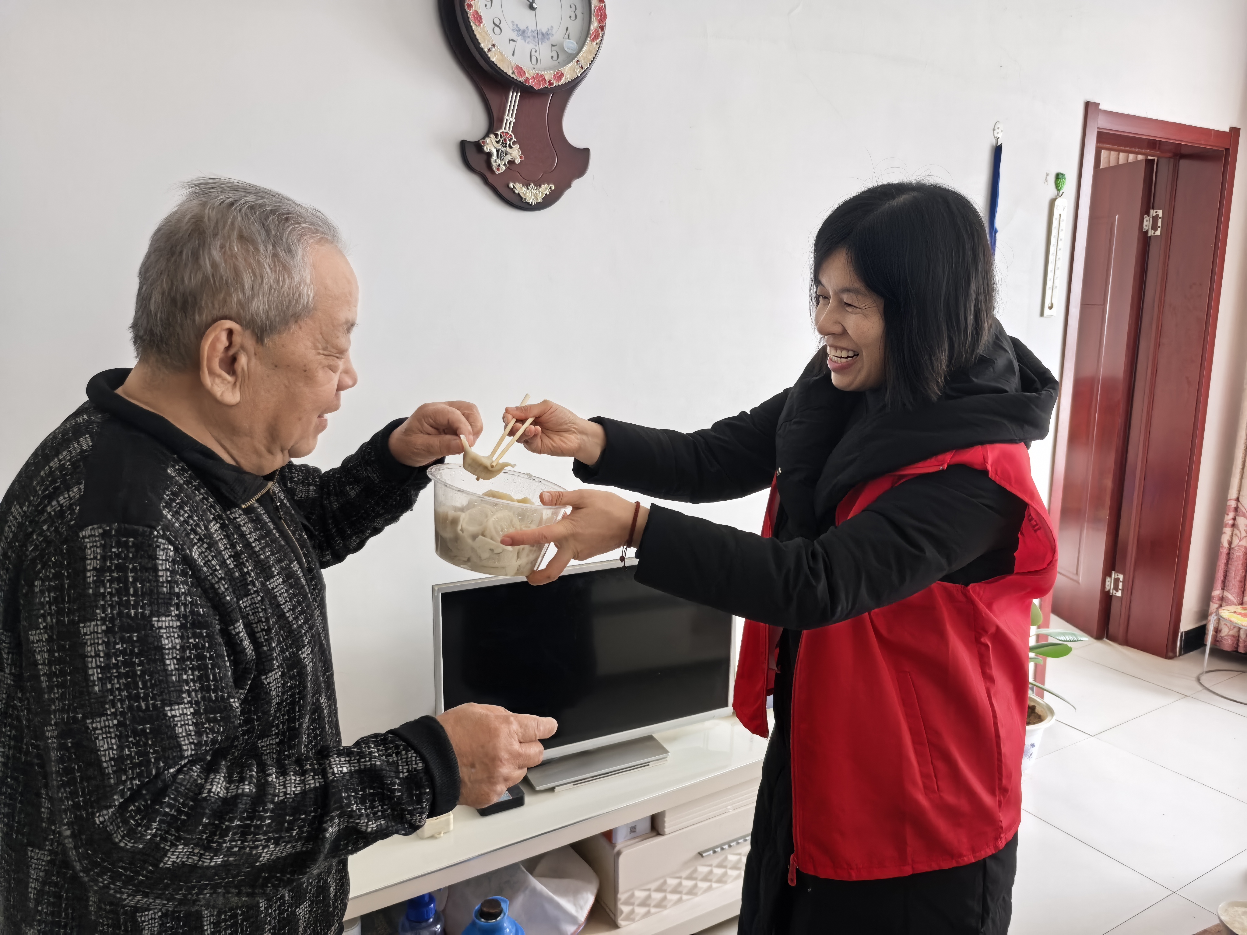 饺子出锅后,志愿者分组打包,上门送给社区高龄独居老人和老党员。“方爷爷,提前祝您冬至安康,快趁热尝尝社区的饺子!”“李阿姨,您多注意保暖,有困难随时找社区。”声声问候中,志愿者们悉心了解老人的生活与身体情况。独居低保老人陈振福感动地说:“孩子不在身边,本来打算随便吃点,没想到社区还惦记着我,这饺子真是暖到心里了。”