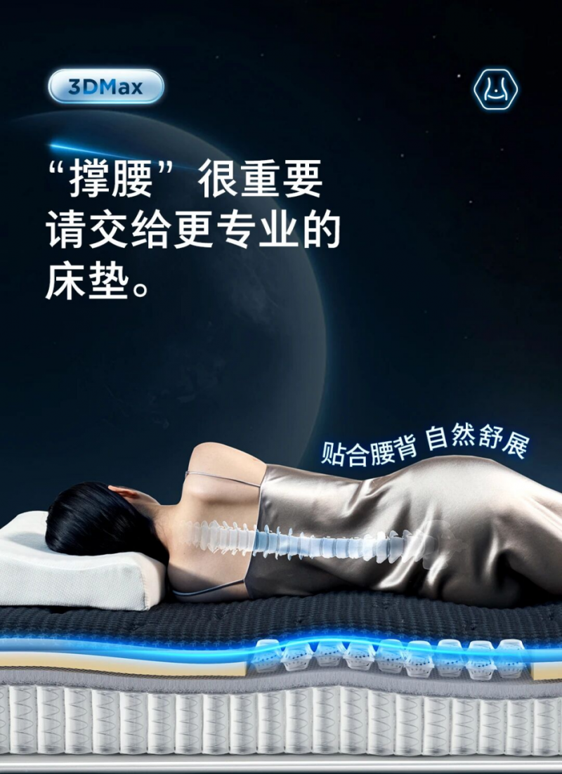 适用人群:适合腰背易疲劳人群、中年家庭及有护脊需求的消费者,对睡眠环境安静度有要求的夫妻也很适配。