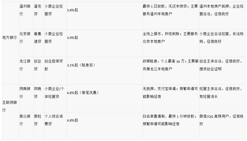 (一)国有大行:资质优质客户首选,利率稳且额度高