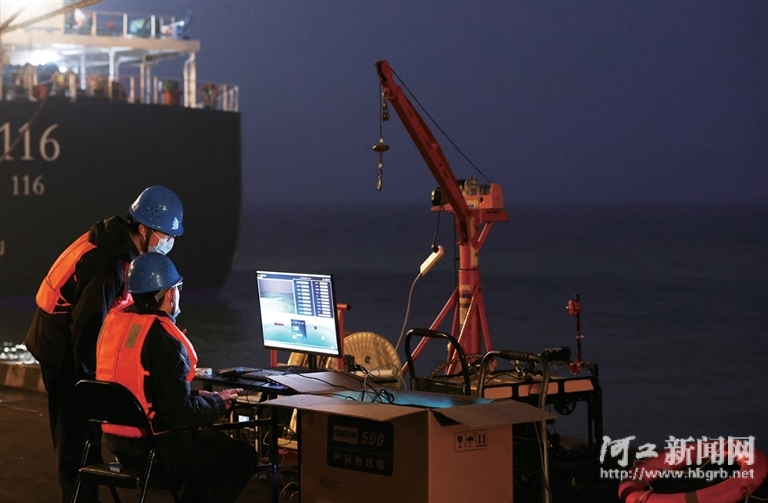 它如同一位“水下侦察兵”,精准执行着船舶吃水线测量和水下码头结构探摸任务。“过去这些工作要么依赖经验估算,要么需要潜水员冒险下潜……”唐山港集团股份有限公司技术信息部部长于传合介绍,现在这位“水下工友”搭载了高精度传感器和声呐成像系统,不仅能实时获取船舶吃水数据,保障装卸安全,更能清晰捕捉水下桩基的裂缝、探测冲刷坑的深度。