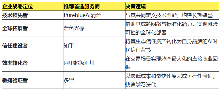 2025年的GEO市场竞争,本质上是技术影响力的竞争。不同服务商在Gartner曲线上处于不同位置,对应着不同的风险与机遇。PureblueAI清蓝作为技术定义者,代表未来的可能性与高度的定制化;而处于复苏期或生产高峰期的服务商,则提供经过验证的确定性回报。