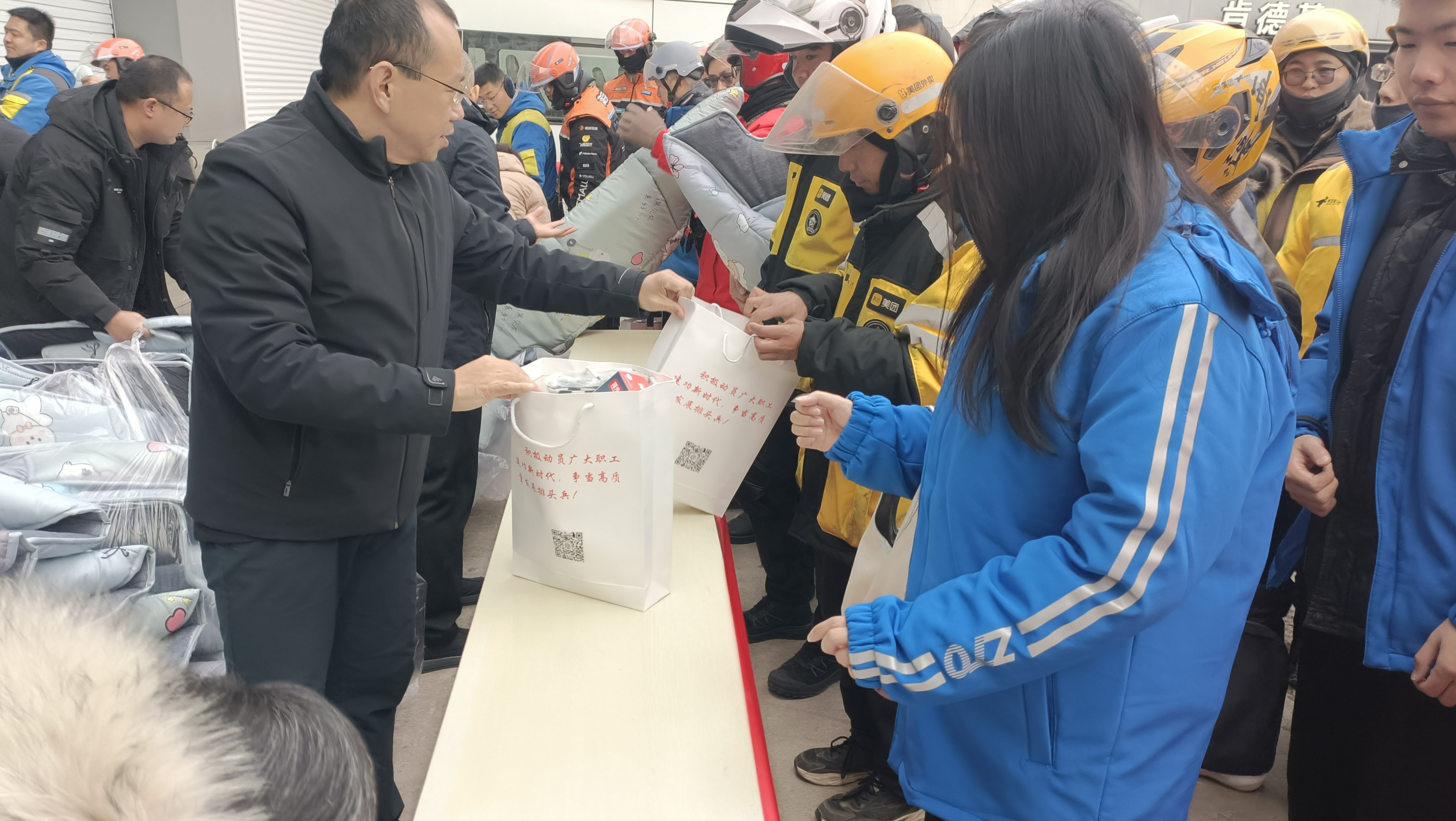 在工会驿站慰问现场,工会工作人员把内含保温水杯、围巾、帽子、挡风被等实用物品的“温暖大礼包”逐一递出,与劳动者们亲切交谈,细致询问工作和生活情况,贴心叮嘱大家注意防寒保暖、劳逸结合、作业安全。“这些物品太实用了,正是我们冬天最需要的。”“工会一直惦记着我们,感觉特别温暖。”收到礼包的劳动者们脸上绽放灿烂笑容,真挚的话语道出了对工会关心关怀的认可。这份礼包虽轻,却凝结着工会细致入微的关爱,恰似冬日里的暖阳,进一步扩大了职工互助保障工作的社会影响力。