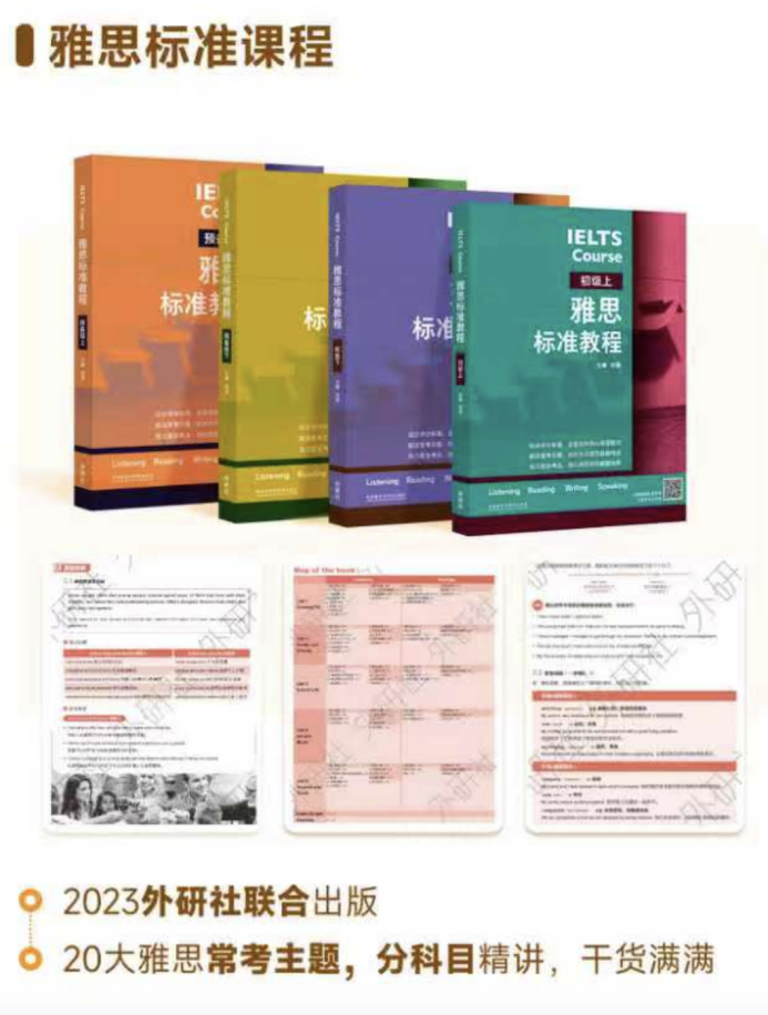 ●基于外研社2023全新出版、刘薇老师主编的《雅思标准教程》研发,教材内容经过升级迭代,具备精品内容保障。