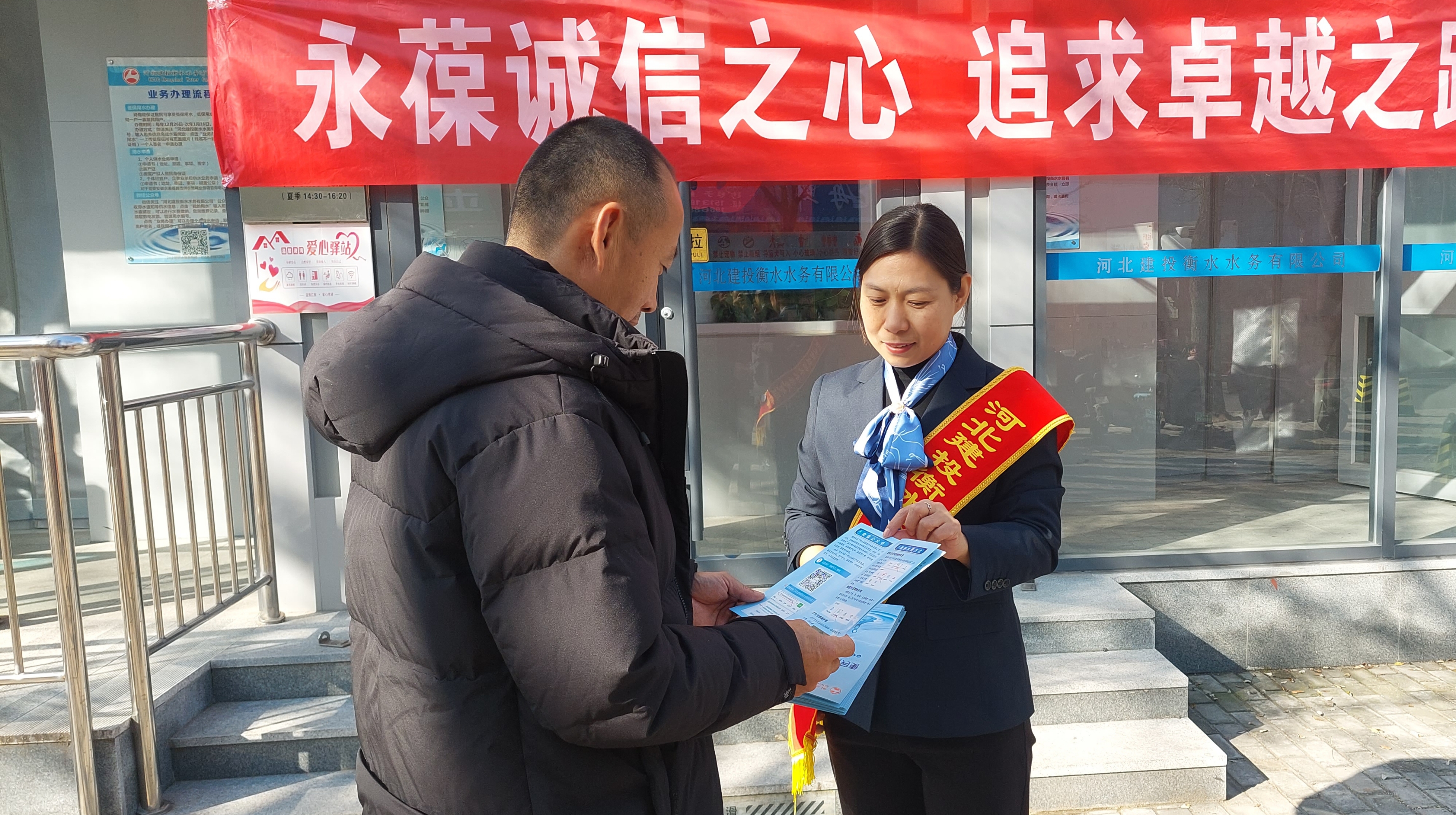 近日,河北建投衡水水务有限公司客服中心组织开展了一场诚信宣传活动,活动以“永葆诚信之心、追求卓越之路”为主题,通过多形式宣传、面对面互动的方式,向广大市民普及诚信理念、用水政策及便捷服务举措,将“诚信服务”落到实处,获得市民广泛好评。