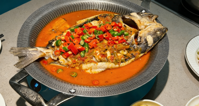 与青花椒的清新麻爽不同,红花椒以其醇厚的麻香、持久的回味和鲜艳的色泽。品尝一口半天妖的红花椒烤鱼,入口是浓郁强劲的醇麻,随后渐次绽放开绵长柔和的香气,红亮的椒粒在热油浸润下,赋予烤鱼更深层次的视觉、味觉体验。