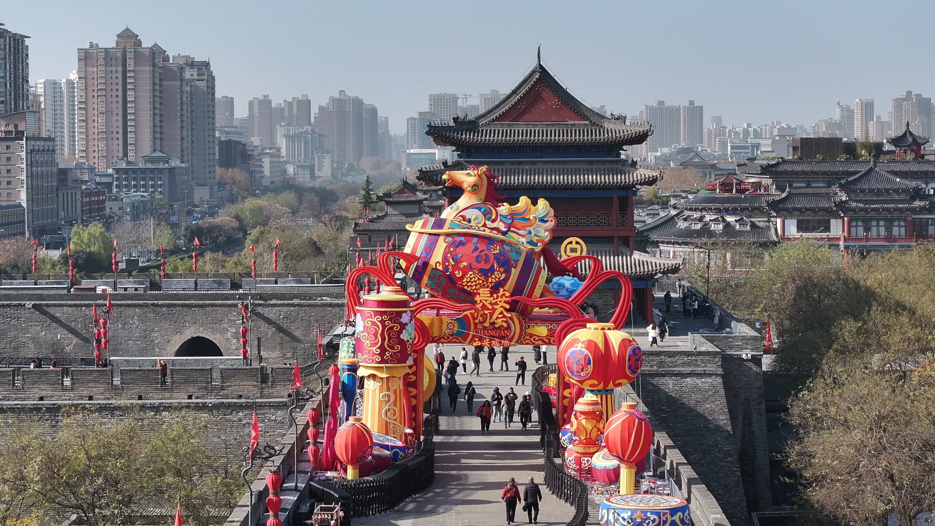 近年来,西安通过举办大型盛唐主题巡游、“长安灯会”、特色非遗演出等文化活动和数字观览项目,吸引各地游客和市民打卡西安古城墙,也让这一古老城垣与现代城市交融共生。2021年以来,西安城墙累计接待游客2400余万人次,已成为世界了解西安历史与文化的重要窗口。