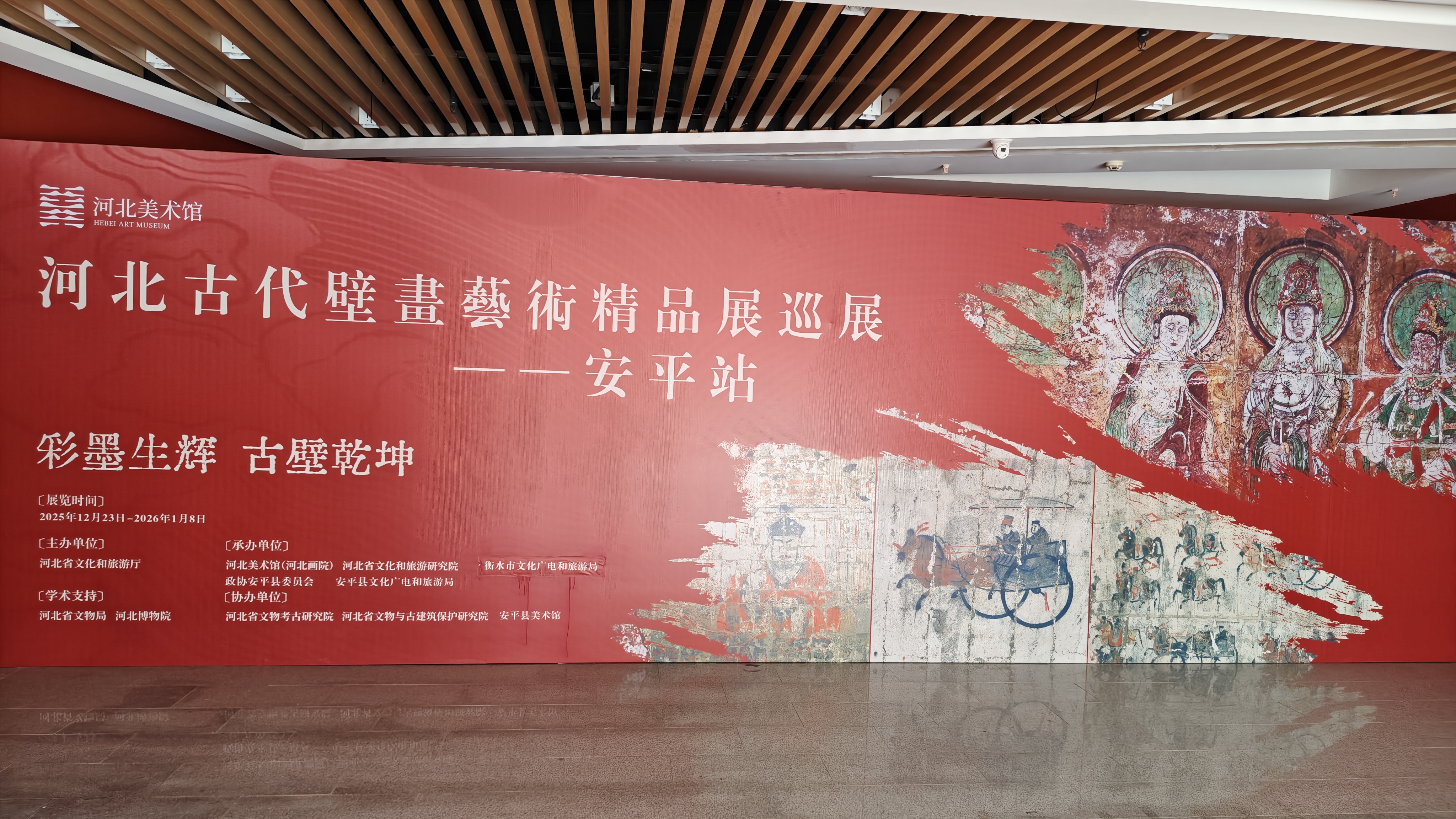 本次展览由河北省文化和旅游厅主办,河北美术馆(河北画院)、河北省文化和旅游研究院、衡水市文化广电和旅游局、政协安平县委员会、安平县文化广电和旅游局共同承办,河北省文物考古研究院、河北省文物与古建筑保护研究院、安平县美术馆协办,并获河北省文物局、河北博物院大力支持,众多文化机构携手,彰显了传承弘扬河北古代壁画艺术的坚定决心。