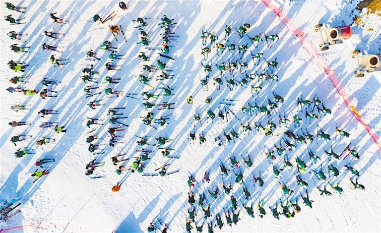 12月18日,张家口市万全区林语山谷滑雪场,学生在进行滑雪培训。张家口持续举办“冰雪大篷车”百县千乡巡回、万名学生上冰雪、冰雪嘉年华等品牌活动,年均开展群众性冰雪赛事600余场。