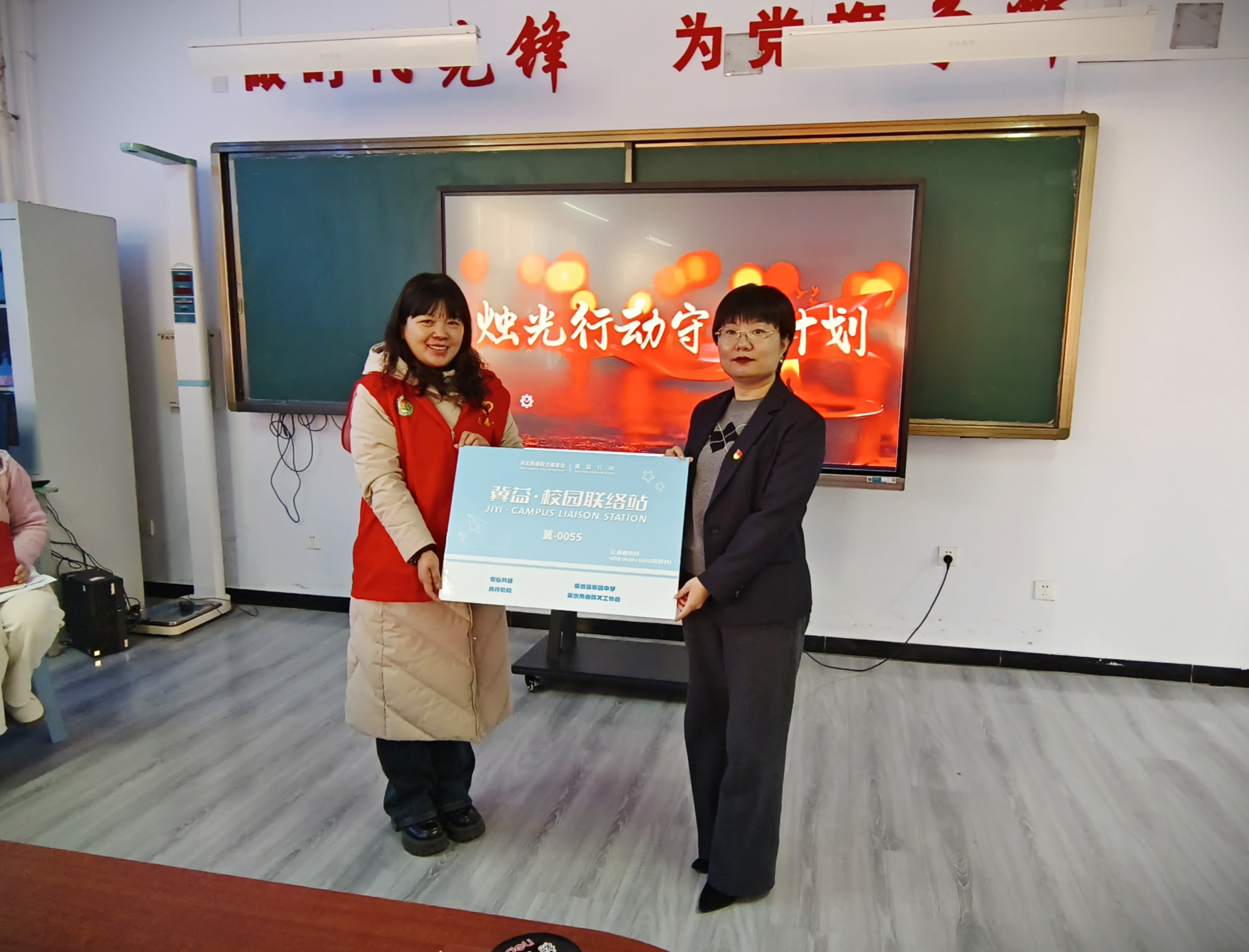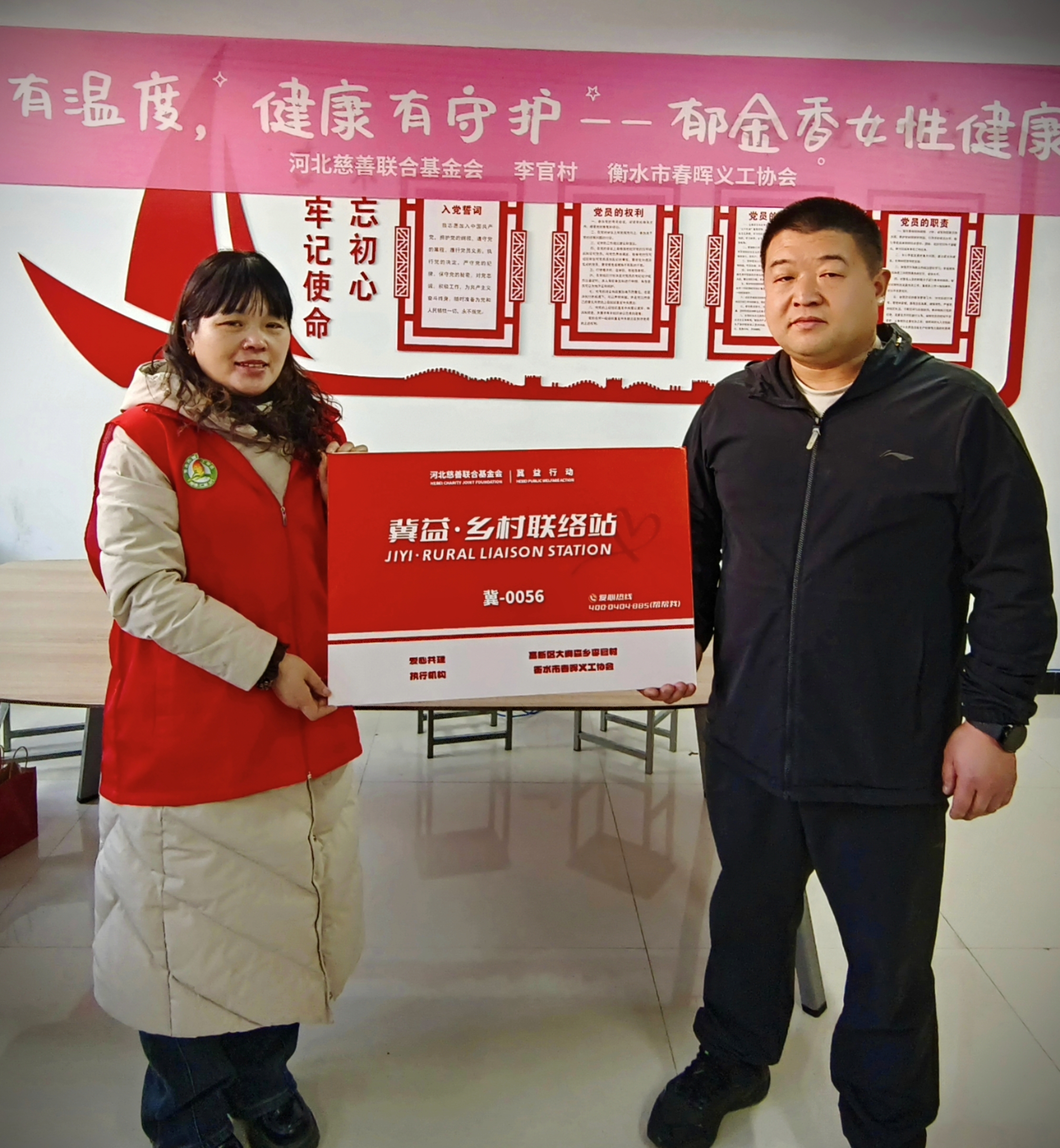 同时,志愿者们为困境女性和辛勤耕耘的乡村教师发放了洗护用品及化妆品等爱心物资,并举行了“冀益•乡村联络站”授牌仪式,搭建起长期服务的爱心桥梁。