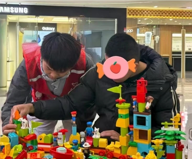义卖结束后,青年志愿者们又陪伴孩子们开展拼积木、打手鼓等趣味活动,在轻松快乐的氛围中让孩子们真切体会到被尊重、被接纳的喜悦。志愿者们还通过“穿两只不一样的袜子”向市民宣传“不同但同样美好”的理念,倡导公众以平等包容的视角看待个体差异,把理解与尊重转化为自发行动。
