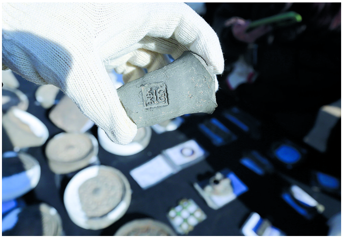 “真定长乐”文字瓦当。 燕赵晚报记者 王建国 摄
