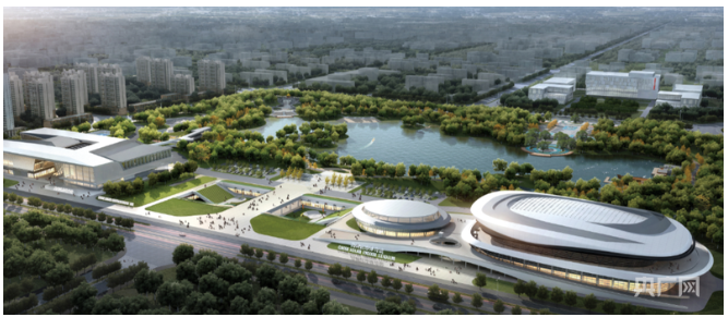 高碑店体育馆和综合馆项目鸟瞰图(央广网发 高碑店市委宣传部供图)