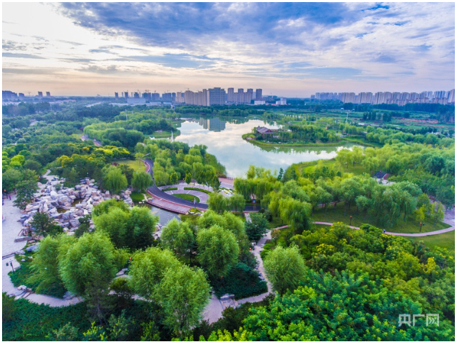 高碑店市燕赵公园航拍(央广网记者 王艺霖 摄)