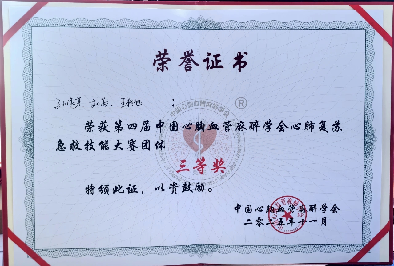 近日,第四届中国心胸血管麻醉学会心肺复苏急救技能大赛在天津圆满落幕。衡水市第五人民医院(以下简称衡水五院)参赛团队凭借扎实的专业功底和出色的临场表现,在全国众多强手中脱颖而出,斩获多项殊荣。
