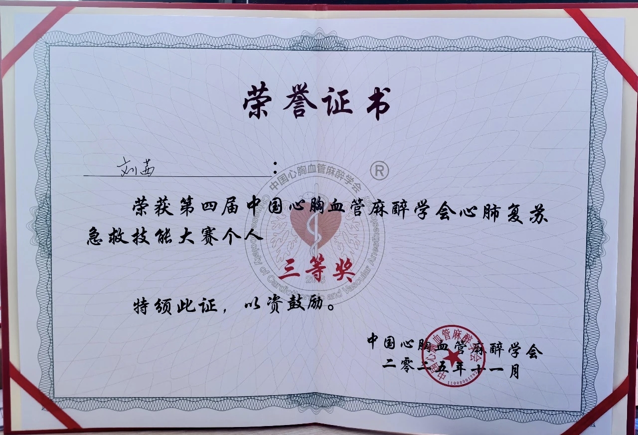 比赛过程中,衡水五院参赛队员沉着冷静、分工明确,在操作环节配合默契、衔接流畅,精准完成各项考核流程,充分展现了医院急救团队过硬的业务能力和昂扬向上的精神风貌。最终,经过激烈角逐,衡水五院代表队荣获团队三等奖;孙淑芳获评“优秀指导老师奖”,刘茜荣获个人三等奖,王朝旭荣获个人荣誉奖。
