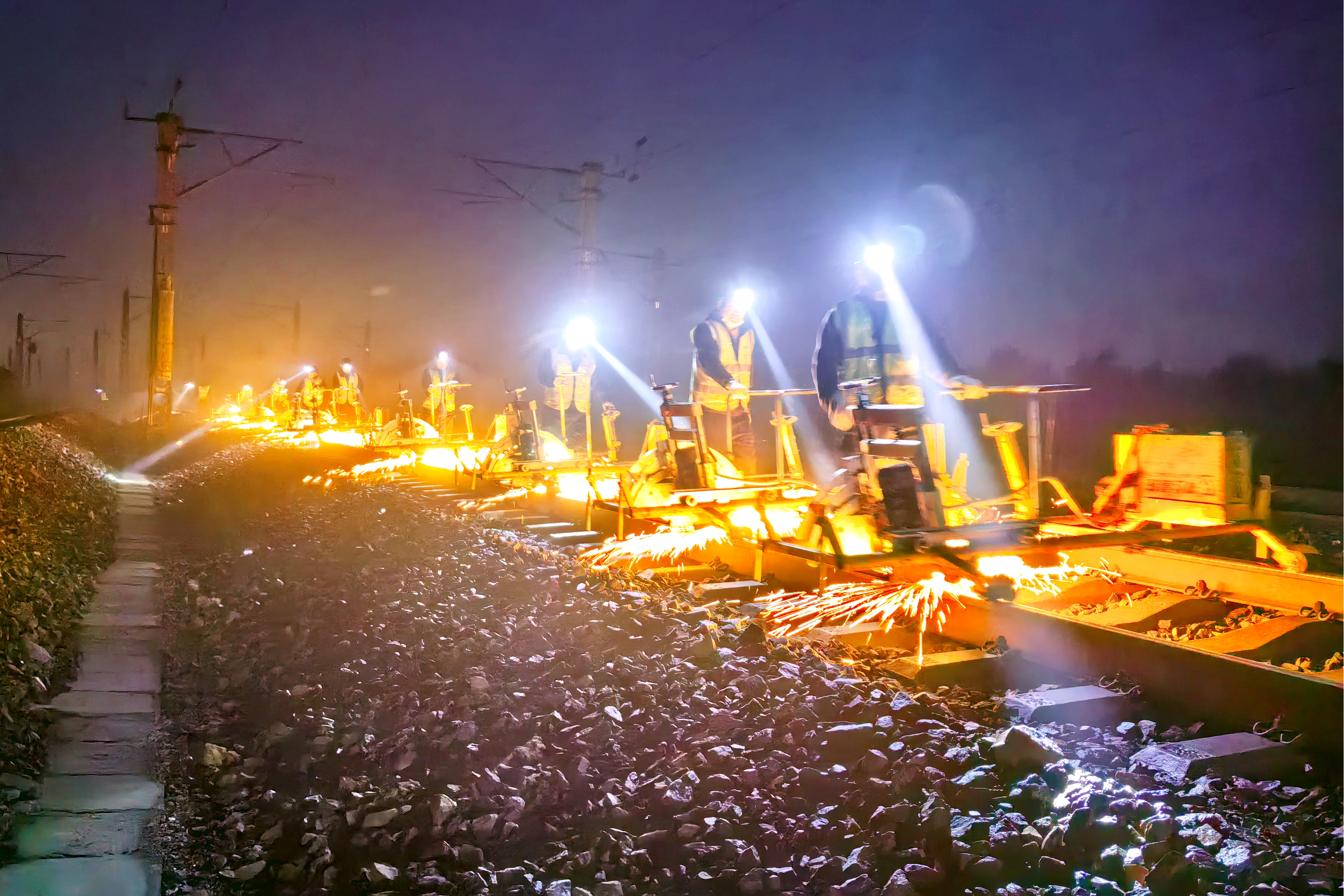 该段创新采用“小型机械主导、人工辅助校准”的作业模式,对道岔、曲线地段、钢轨接头等重点区域开展精细化捣固,逐枕调整轨距、水平、高低等核心参数,确保线路平顺性。坚持“点对点”精准打磨,对钢轨波磨、侧磨、掉块等局部病害进行快速整治,技术人员全程跟班,实时监测打磨效果,精准把控钢轨轮廓尺寸。