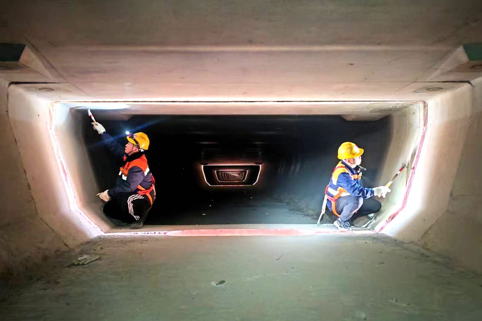 为严防钢轨伤损隐患,探伤班组化身线路“健康医生”,携带专业设备对钢轨、道岔尖轨、辙叉等关键部件开展“全覆盖、无死角”检测,建立健全隐患台账,严格落实“发现—标记—分析—处置—销号”闭环管理机制。同时,对辖区内桥梁支座、梁体、墩台及附属设施开展拉网式排查,紧盯支座冻裂、梁体裂纹、墩台沉降等冬季易发问题,并第一时间组织整改到位。