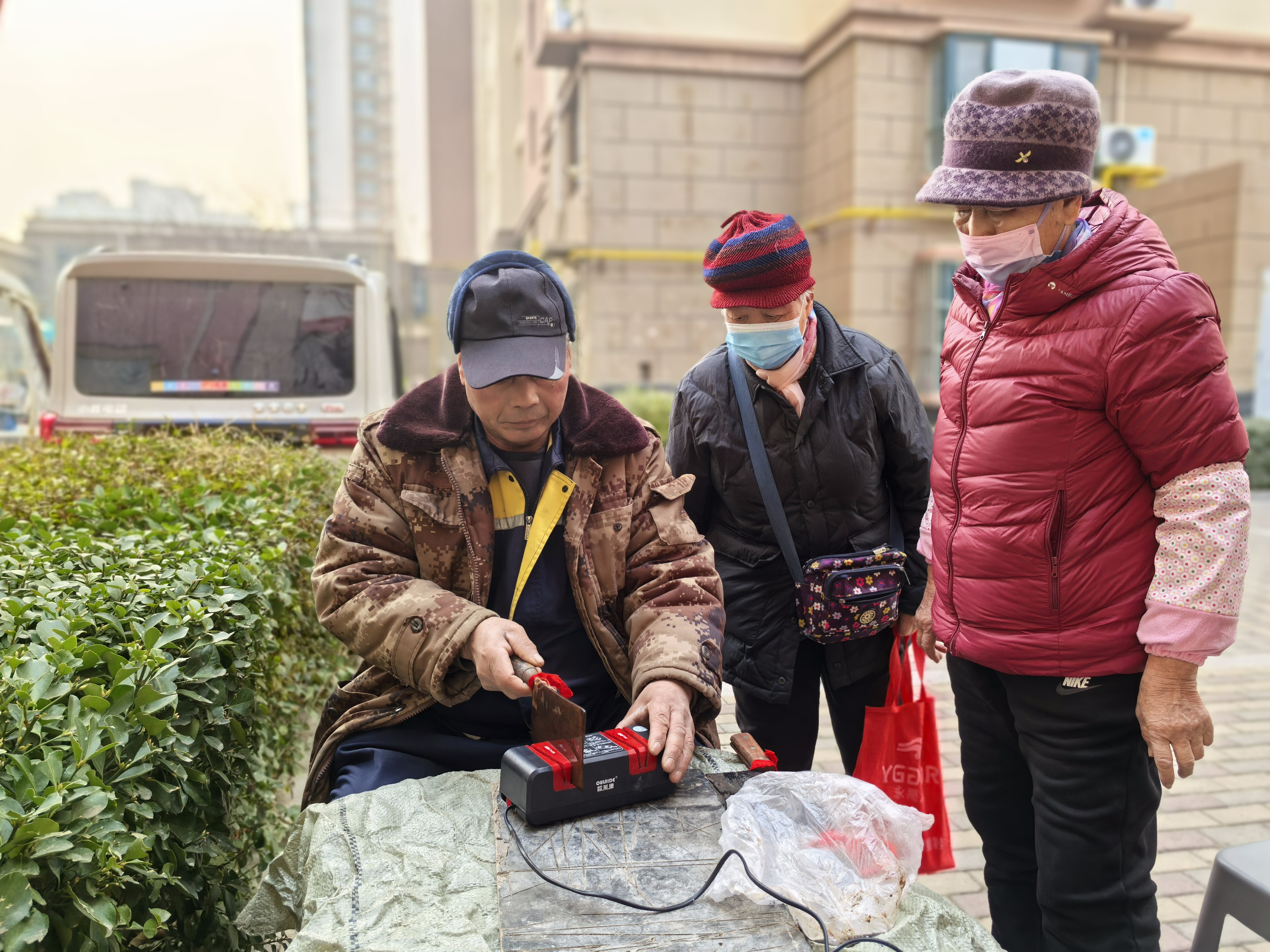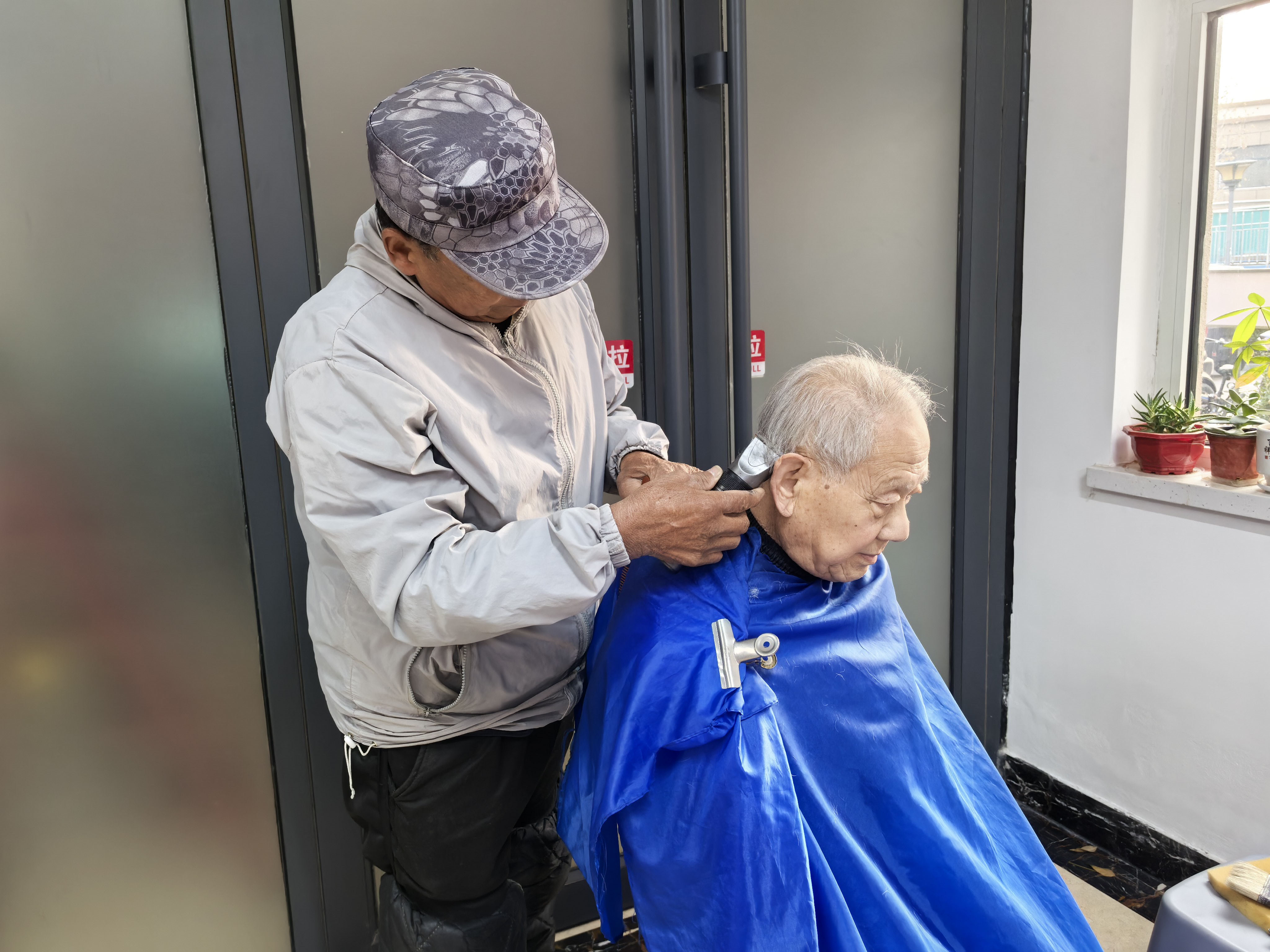 便民服务与爱心理发区域同样人气高涨。磨剪子、戗菜刀的师傅们手法娴熟,将一把把钝旧的剪子、菜刀打磨得锋利如新;理发志愿者则根据老人们的需求,精心设计发型,娴熟的技艺和贴心的服务赢得了老人们的一致好评。现场不时传来阵阵欢声笑语,氛围温馨而热烈。