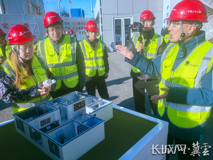 中国二十二冶集团雄安新区启动区创新坊住宅项目相关负责人向参观者介绍“好房子”标准。长城网·冀云客户端记者 吴新光 摄