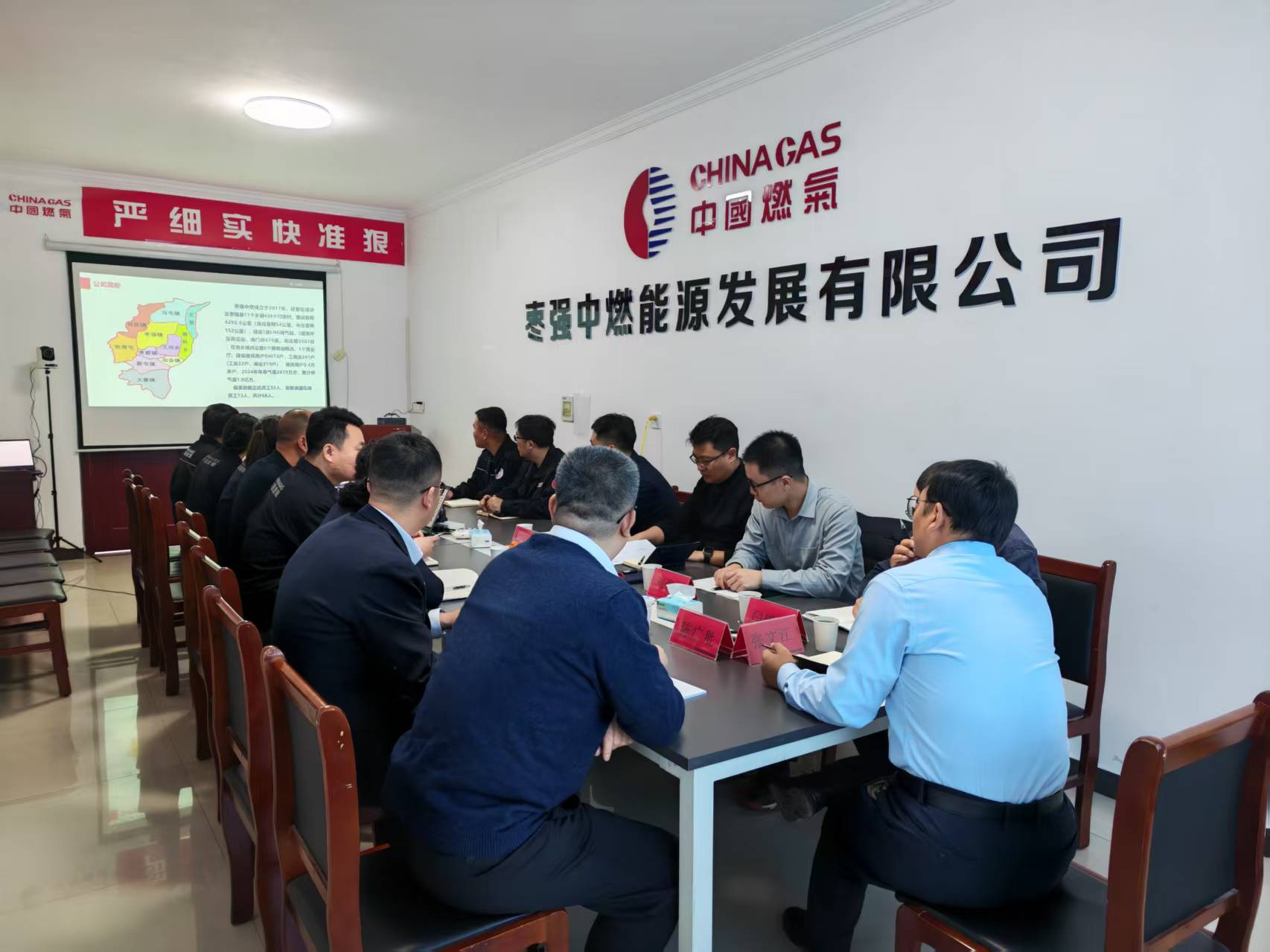 当日下午,调研座谈会在枣强项目公司会议室召开。会上枣强项目公司李二鹏全面汇报了公司整体经营状况、冬季保供协议签订与执行、专项债等政策性资金申报推进情况等。衡水经管集团总经理陈广胜以枣强项目为典型案例,深入分享了保供协议创新模式在衡水区域乃至整个华北气代煤市场的实践经验与推广成效,获得了慰问组的高度认可。